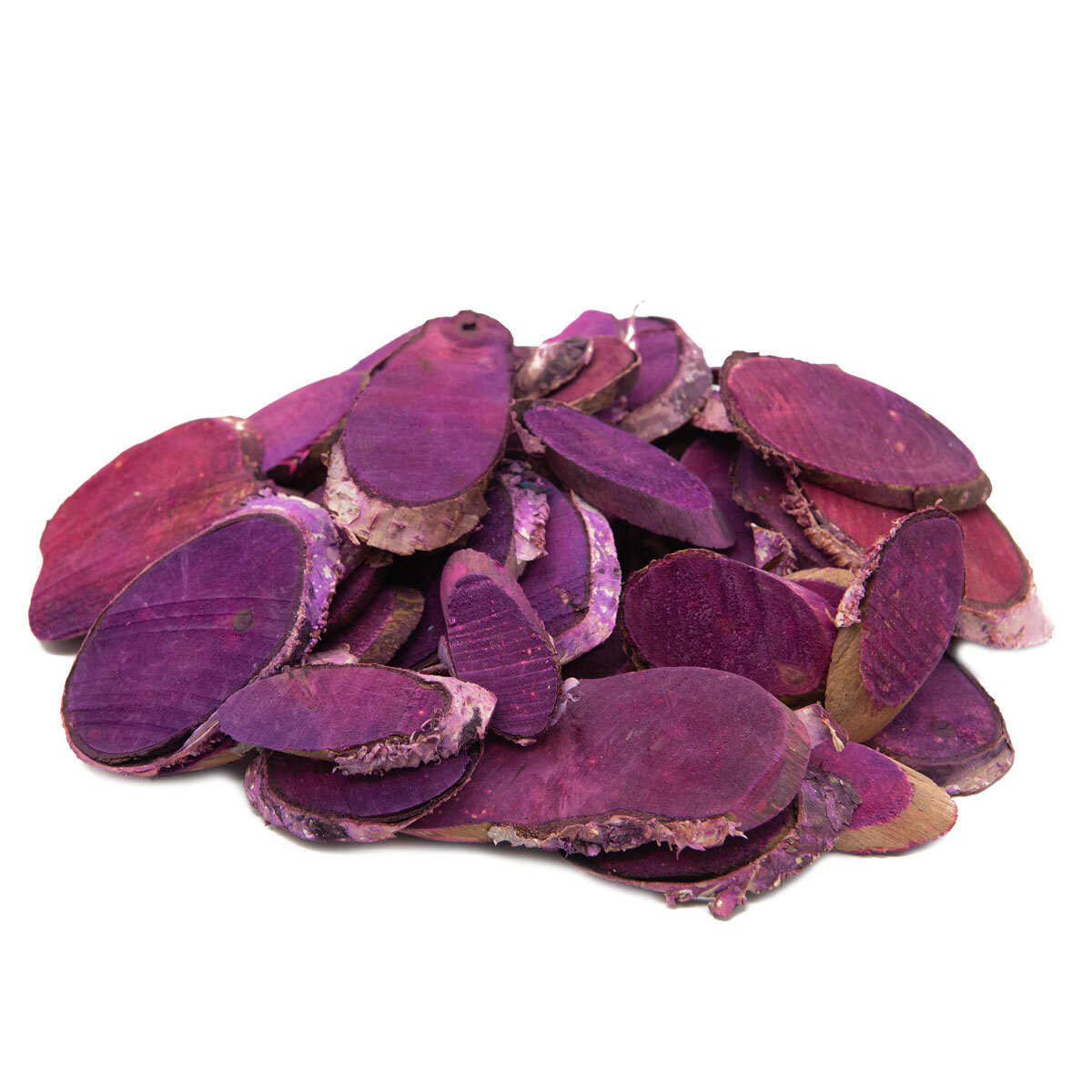 Спилы овальные для декора, длина 4-8 см, толщина 0,7см, 250г (фиолетовый), YW081