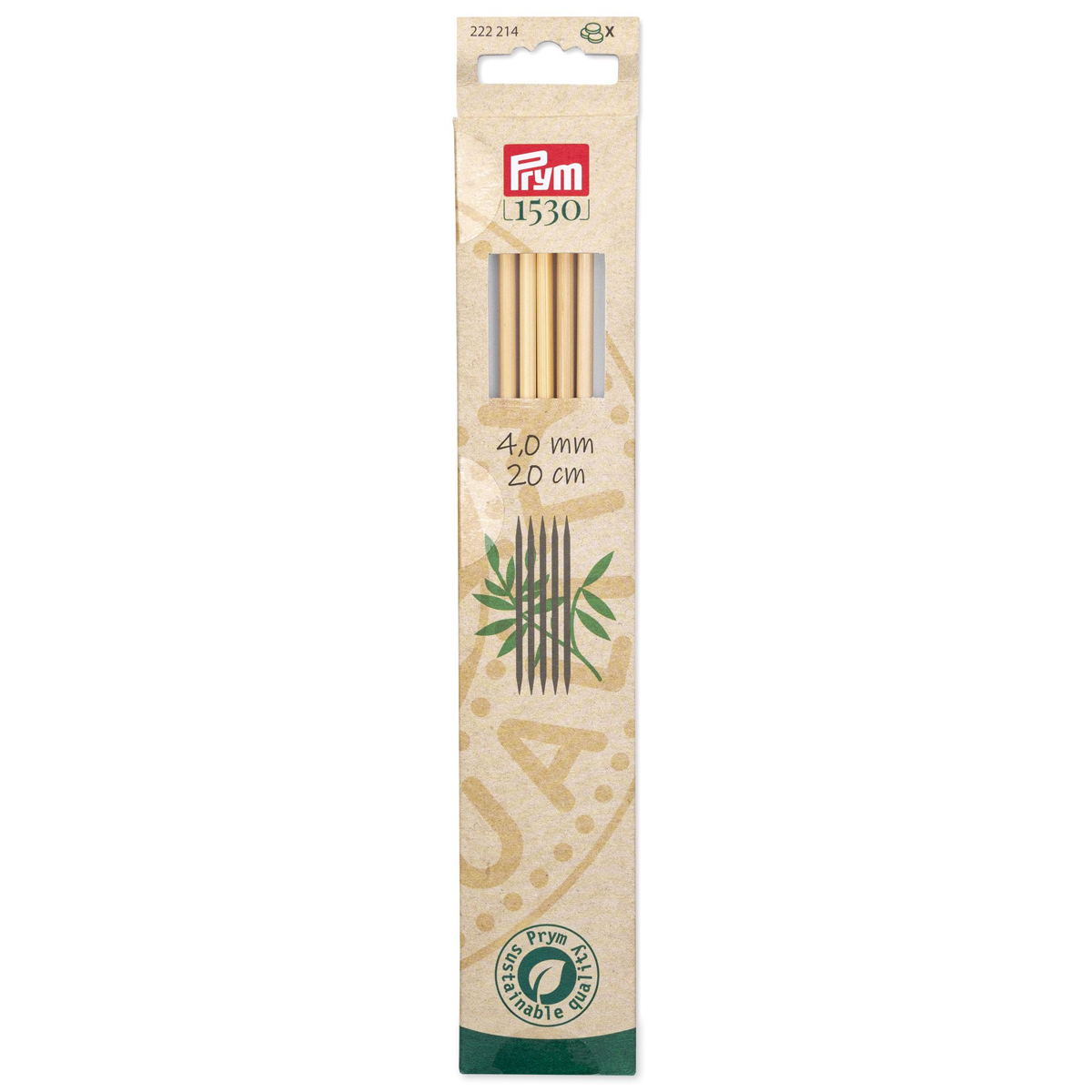 Спицы чулочные Prym ⌀4,0 мм, 20 см, 5 шт, бамбук