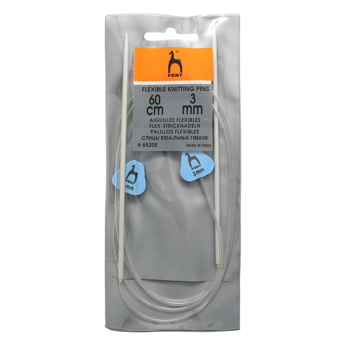 Легкие и прочные спицы Pony имеют оригинальный практичный дизайн, делающий работу с ними удобной и приятной. Твердая алюминиевая часть спицы со скругленным концом переходит в гибкий пластиковый тросик и завершается ограничителем, предотвращающим соскальзывание связанного полотна и роспуск петель. Спицы идеально подходят для вязания широкого полотна - объемных свитеров, ковриков, покрывал, а так же шарфов и крупных деталей одежды, таких как спинка и передняя часть свитера, жилетки или кофты. PONY – это всемирно известный индийский бренд, продукция которого востребована на всех континентах мира и славится своим высоким качеством и разнообразным ассортиментом товаров. Вязальные спицы PONY изготовлены из алюминия высокого качества со специальной обработкой. Благодаря электролитическому оксидированию металла спицы имеют оптимальную для вязания гладкую поверхность, отличаются высокой прочностью и упругостью, идеально защищены от коррозии. При этом светлая шерстяная пряжа от соприкосновения с ними не темнеет. Длина: 60 см Диаметр спицы: 3 мм