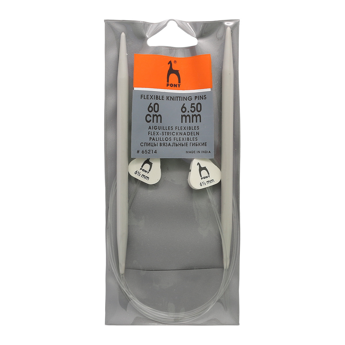 Легкие и прочные спицы Pony имеют оригинальный практичный дизайн, делающий работу с ними удобной и приятной. Твердая алюминиевая часть спицы со скругленным концом переходит в гибкий пластиковый тросик и завершается ограничителем, предотвращающим соскальзывание связанного полотна и роспуск петель. Спицы идеально подходят для вязания широкого полотна - объемных свитеров, ковриков, покрывал, а так же шарфов и крупных деталей одежды, таких как спинка и передняя часть свитера, жилетки или кофты. PONY – это всемирно известный индийский бренд, продукция которого востребована на всех континентах мира и славится своим высоким качеством и разнообразным ассортиментом товаров. Вязальные спицы PONY изготовлены из алюминия высокого качества со специальной обработкой. Благодаря электролитическому оксидированию металла спицы имеют оптимальную для вязания гладкую поверхность, отличаются высокой прочностью и упругостью, идеально защищены от коррозии. При этом светлая шерстяная пряжа от соприкосновения с ними не темнеет. Длина: 60 см Диаметр спицы: 6,5 мм