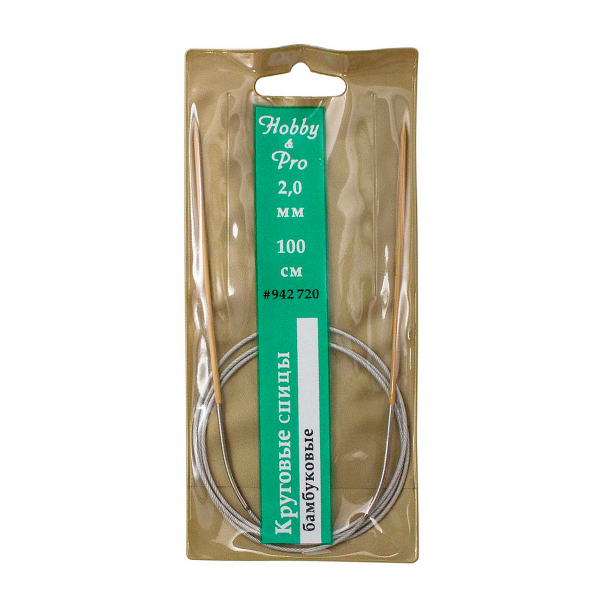 Спицы круговые бамбук с метал.тросиком 100 см, 2,0 мм, Hobby&Pro 942720