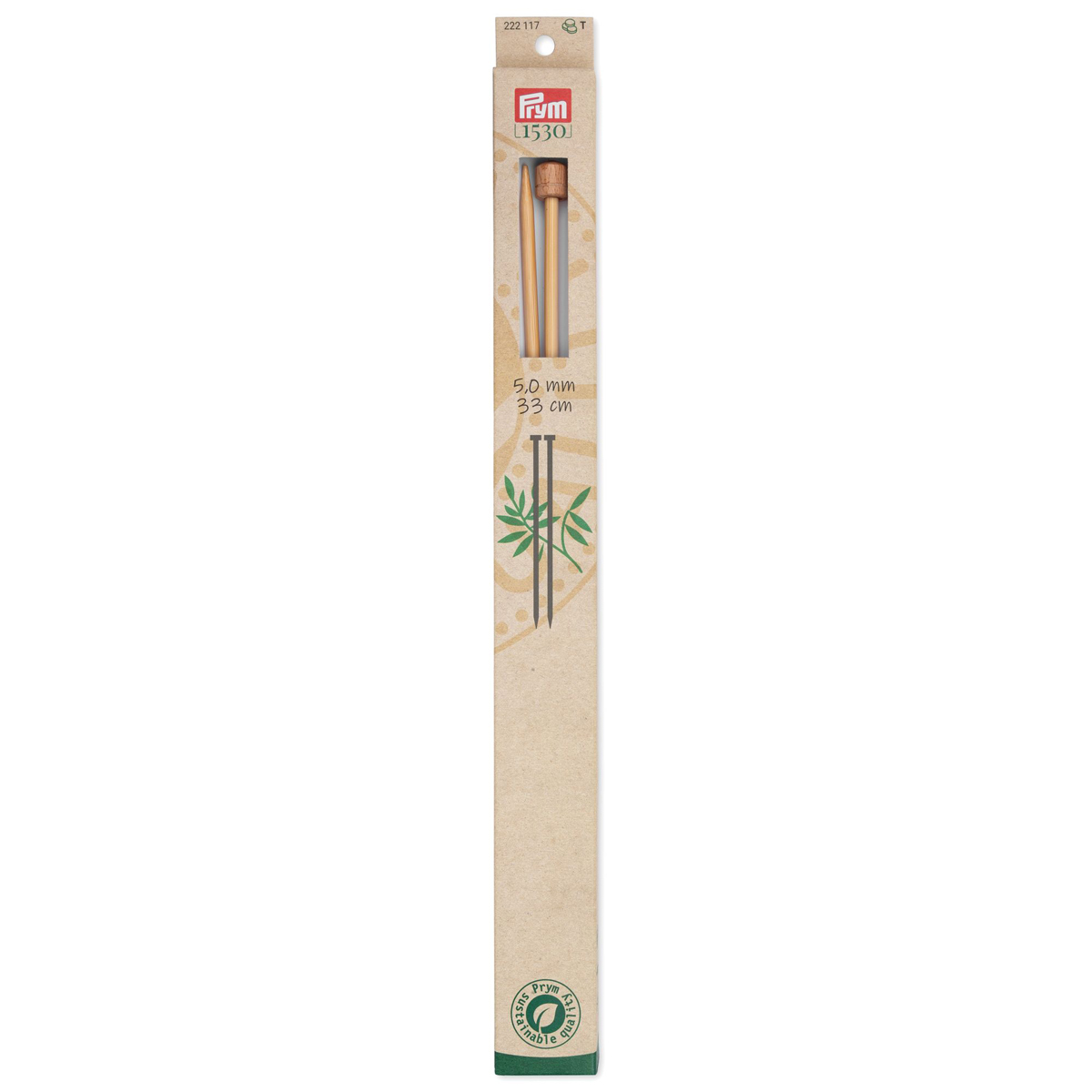 Спицы прямые Prym ⌀5,0 мм, 33 см, 2 шт, бамбук
