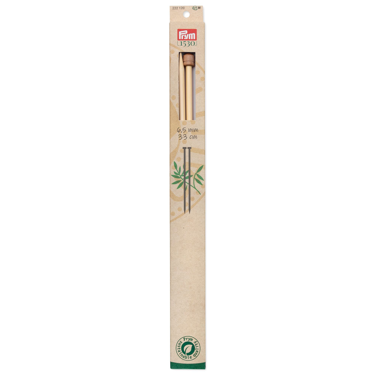 Спицы прямые, бамбук ⌀6,5 мм, 33 см, 2 шт, Prym