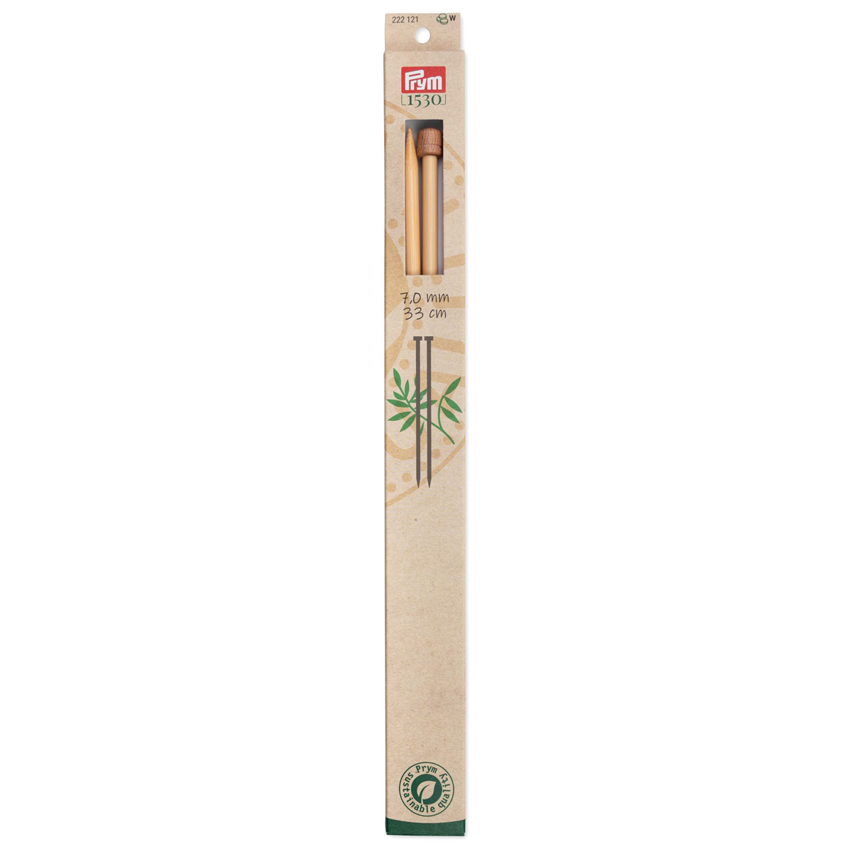 Спицы прямые Prym ⌀7,0 мм, 33 см, 2 шт, бамбук