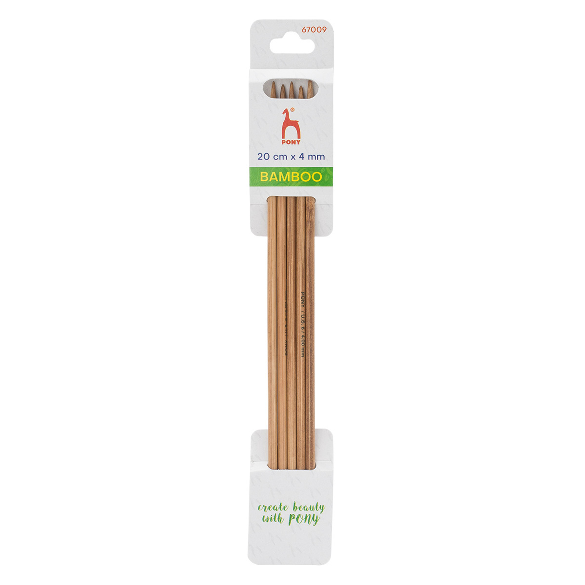 Спицы чулочные Pony Bamboo ⌀4.0 мм, 20 см, 5 шт, бамбук, 67009