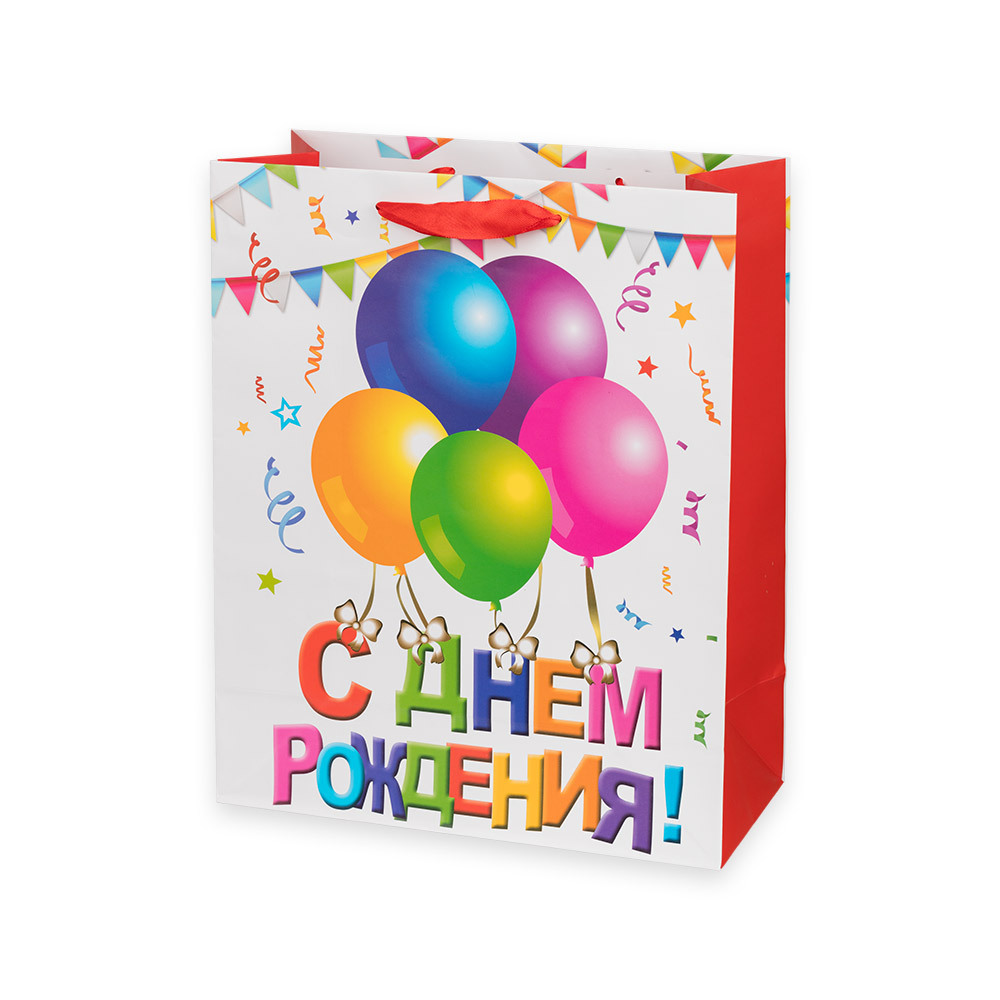 Подарочный пакет 157 г/м², 26х32х12 см, 12 шт, 03 С Днем рождения!, Stilerra HPBM