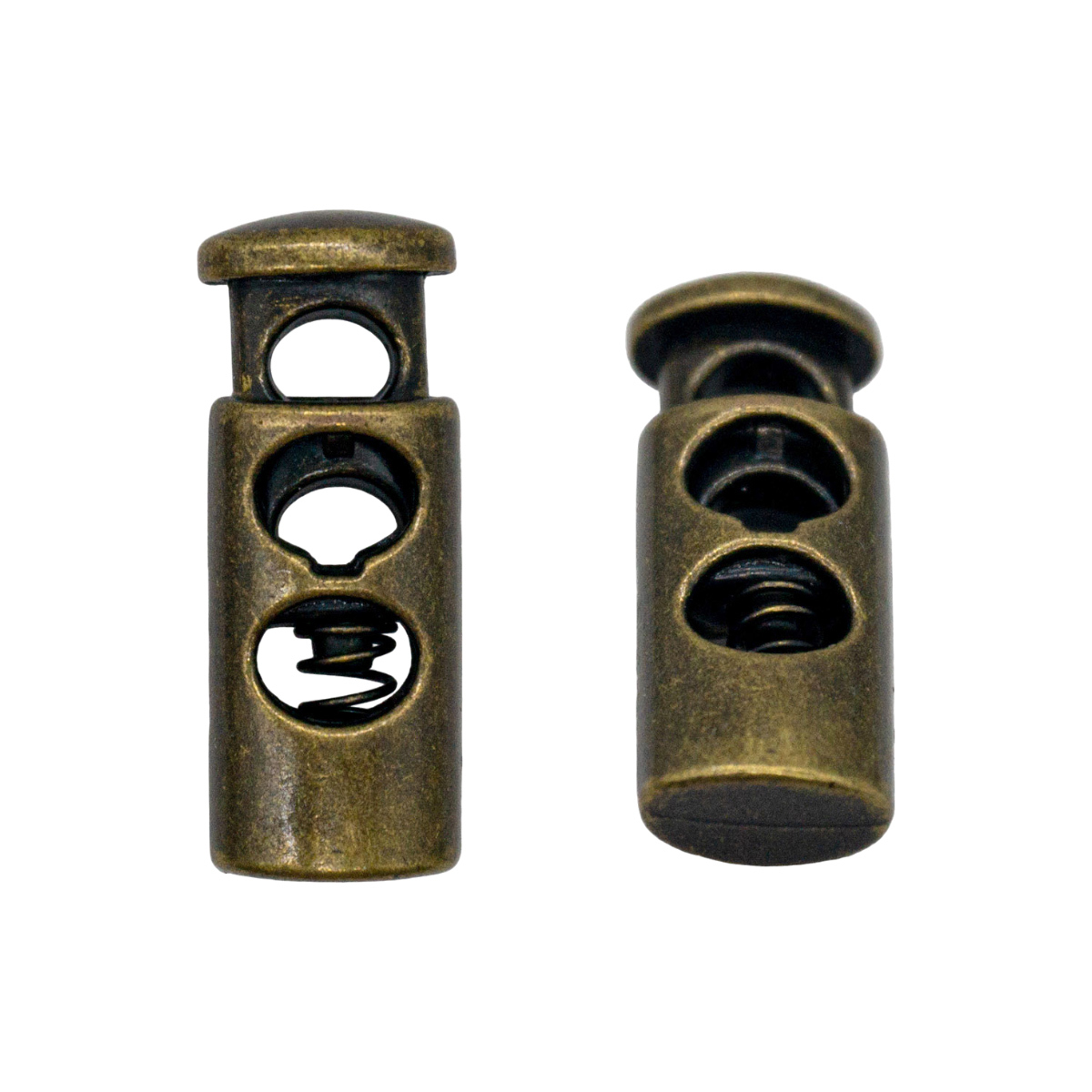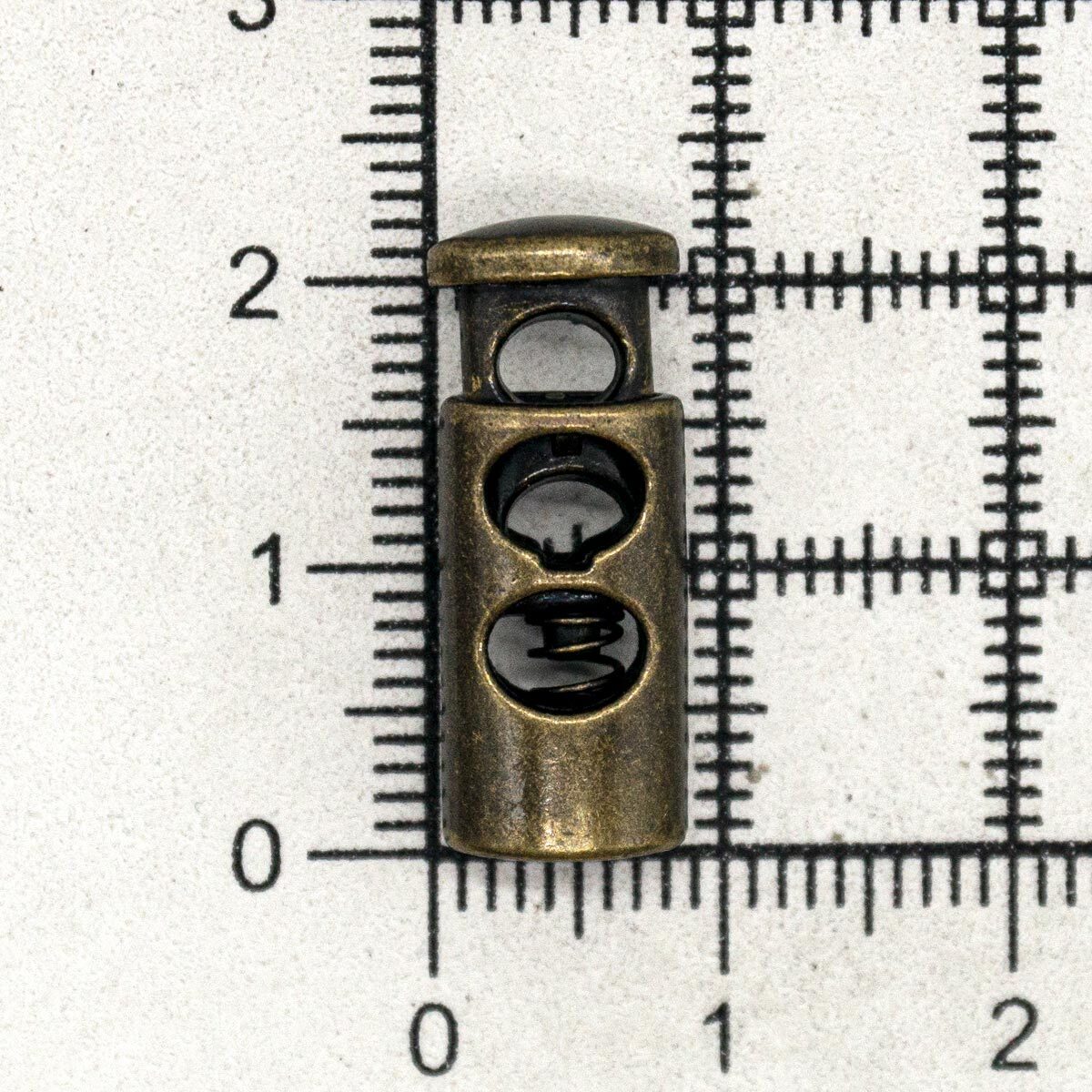 Стопор цилиндрической формы с двумя отверстиями. Позволяет зафиксировать натяжение шнура. Используется при шитье рюкзаков, одежды для спорта, отдыха, верхней или детской одежды. Изготовлен из металла. Размер: 22 мм.