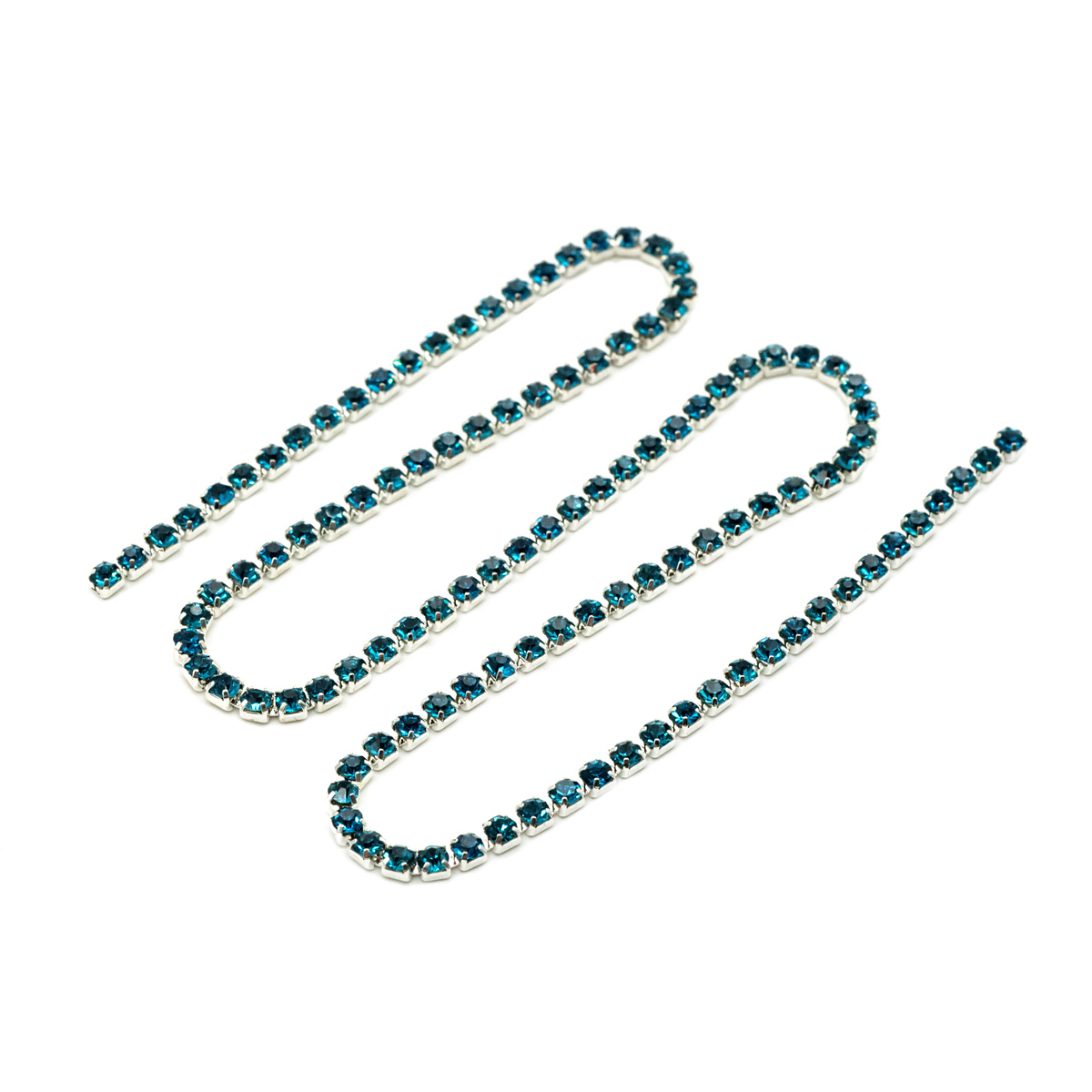 Стразовые цепочки (серебро), цвет: лазурный, размер 2 мм, 30 см/упак., ЦС004СЦ2