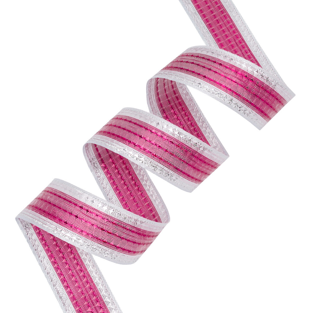 Лента подарочная 25 мм / 25 метров, рис.9015 (28 серебро/малина), С3687Г17 Стрела-25
