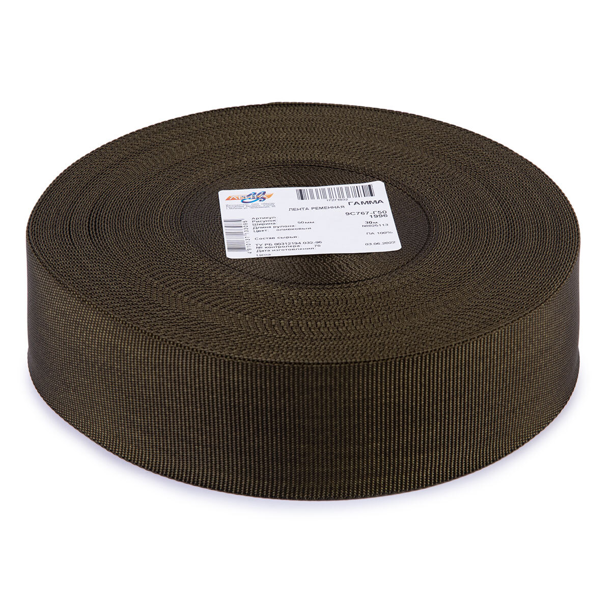 Стропа (ременная лента) 50 мм / 30 метров, толщ. 0.85 мм, [32.39 г/пог.м], 100% п/а, 113 оливковый, Gamma 9с767