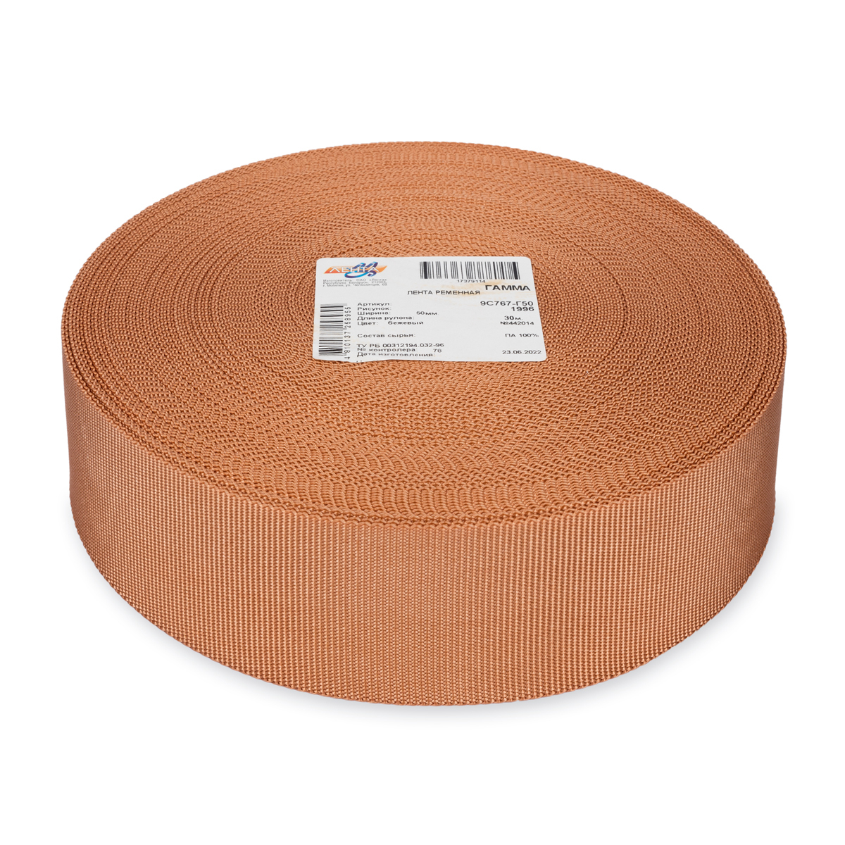 Стропа (ременная лента) 50 мм / 30 метров, толщ. 0.85 мм, [32.39 г/пог.м], 100% п/а, 14 бежевый, Gamma 9с767