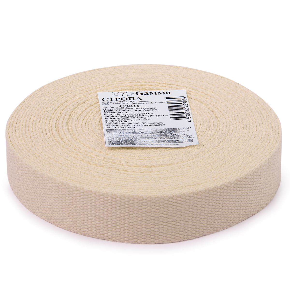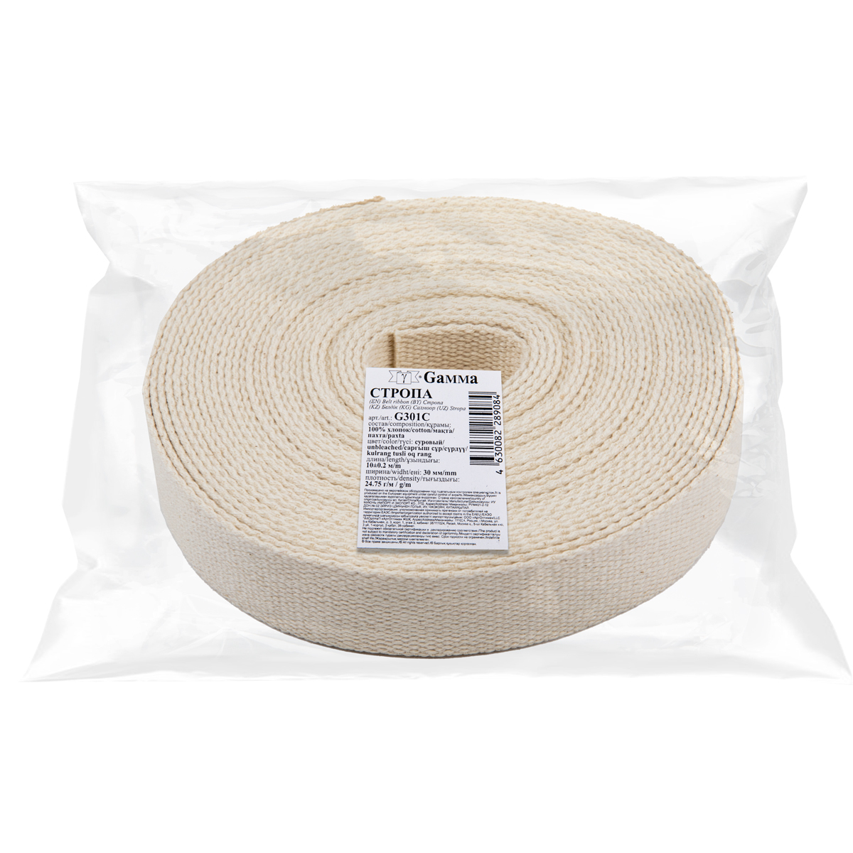Стропа (ременная лента) 30 мм / 10 метров, толщ. 1.92 мм, [24.75 г/пог.м], 100% х/б, суровый, Gamma G301C
