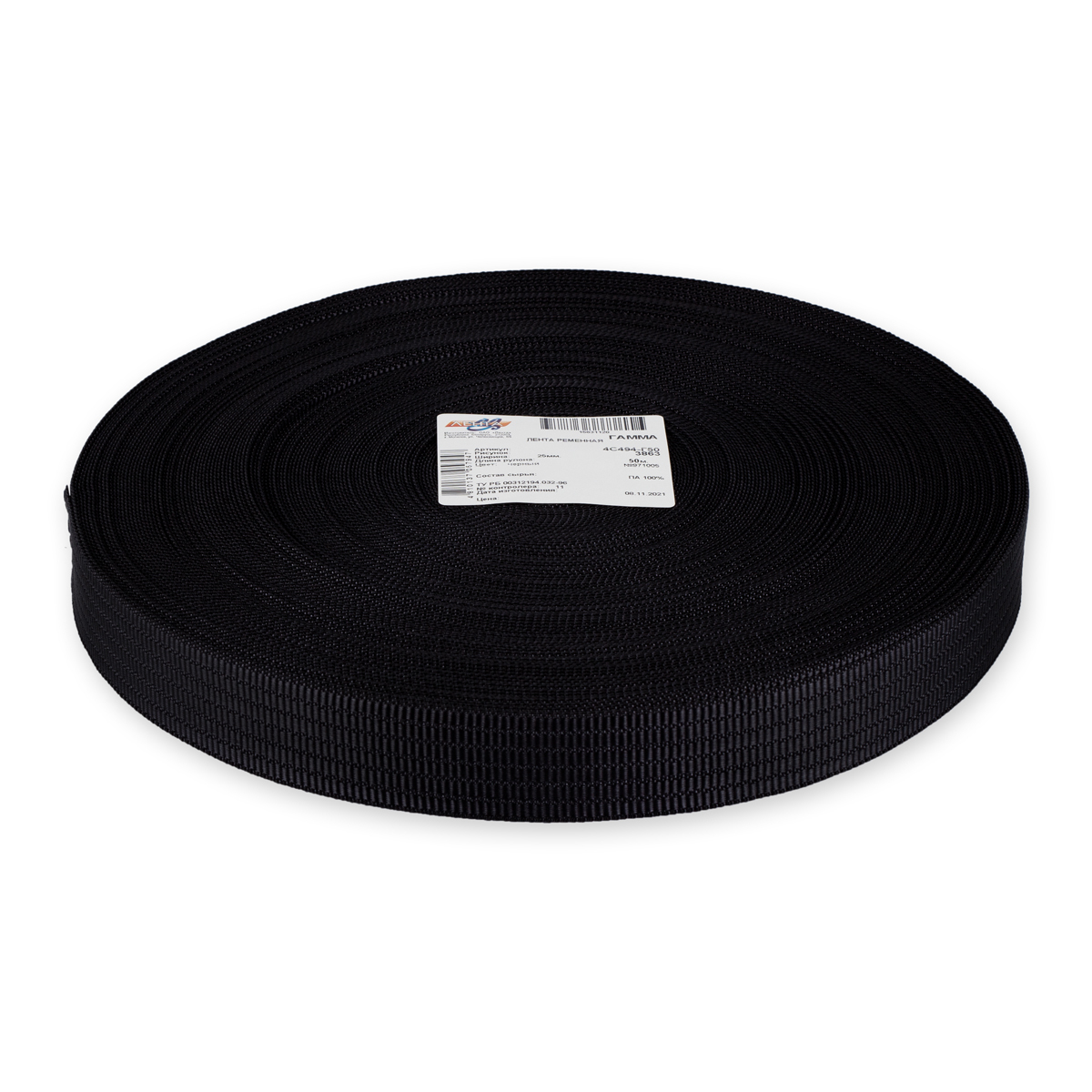 Стропа (ременная лента) 25 мм / 50 метров, [17.73 г/пог.м], 100% п/а, черный, Gamma 4с494