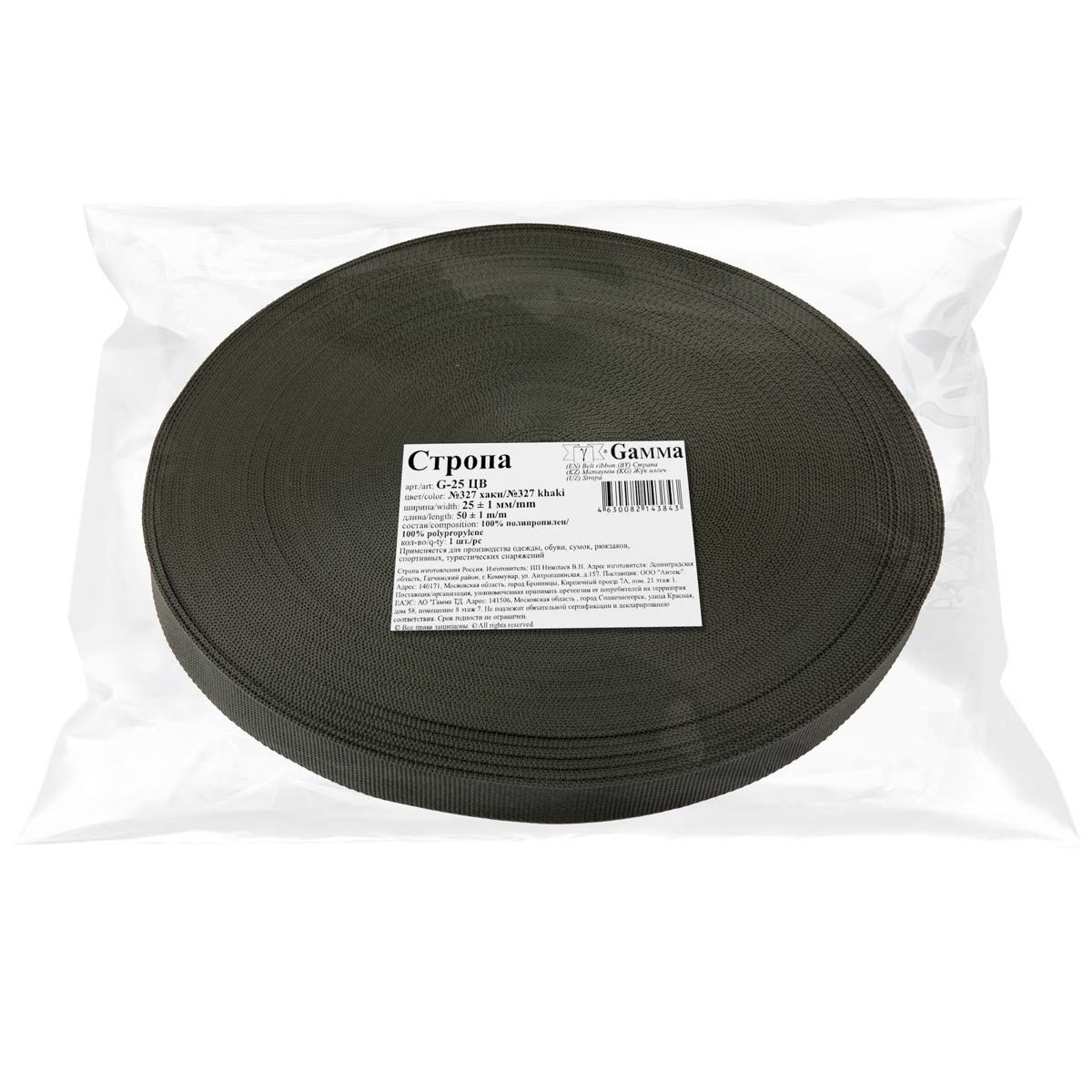Стропа (ременная лента) 25 мм / 50 метров, толщ. 1.08 мм, [10 г/пог.м], 100% п/п, 327 хаки, Gamma G-25 ЦВ