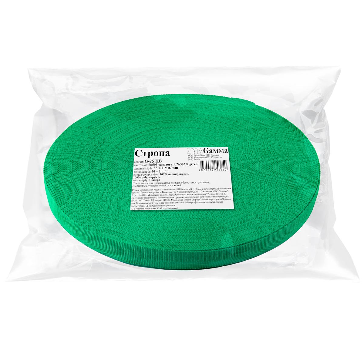 Стропа (ременная лента) 25 мм / 50 метров, толщ. 1.08 мм, [10 г/пог.м], 100% п/п, 503 салатовый, Gamma G-25 ЦВ