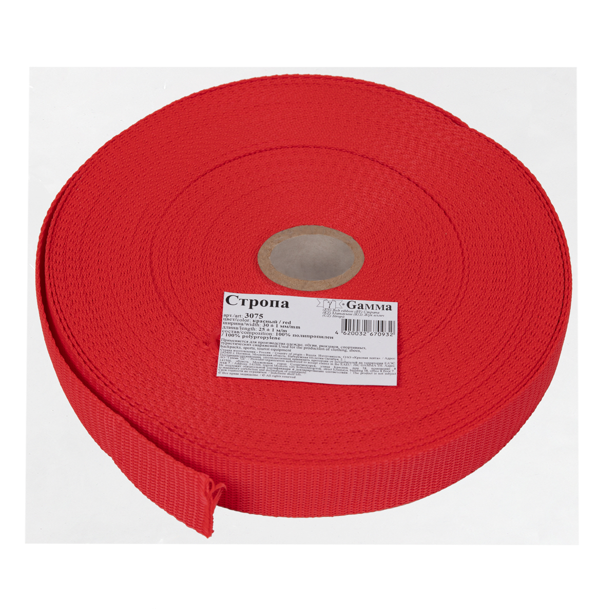 Стропа (ременная лента) 30 мм / 25 метров, толщ. 0.94 мм, [17.1 г/пог.м], 100% п/п, красный, Gamma 3075