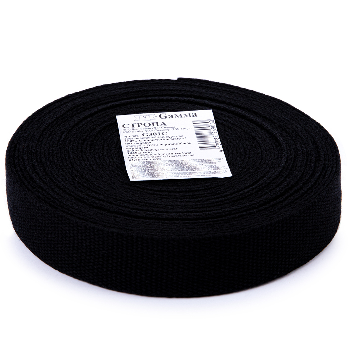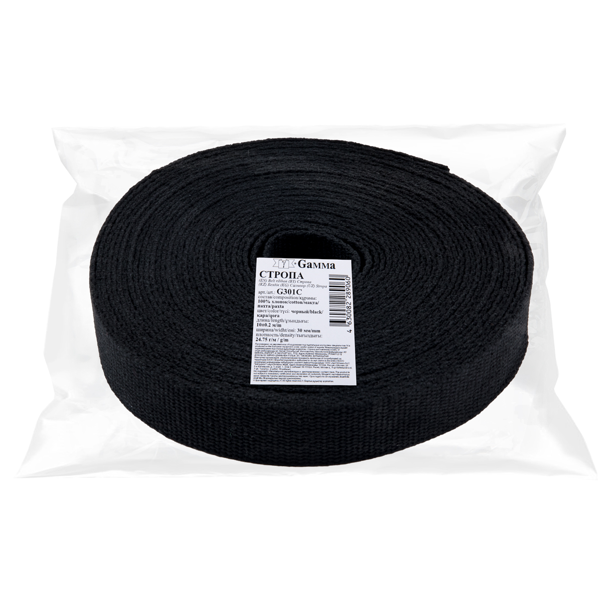 Стропа (ременная лента) 30 мм / 10 метров, толщ. 1.92 мм, [24.75 г/пог.м], 100% х/б, черный, Gamma G301C
