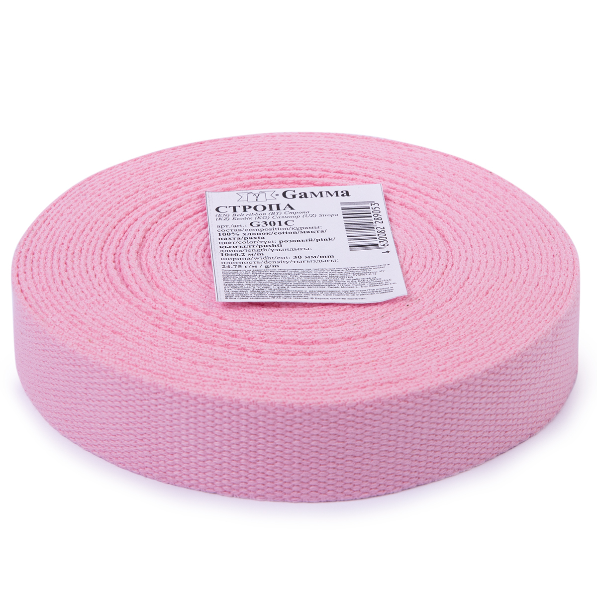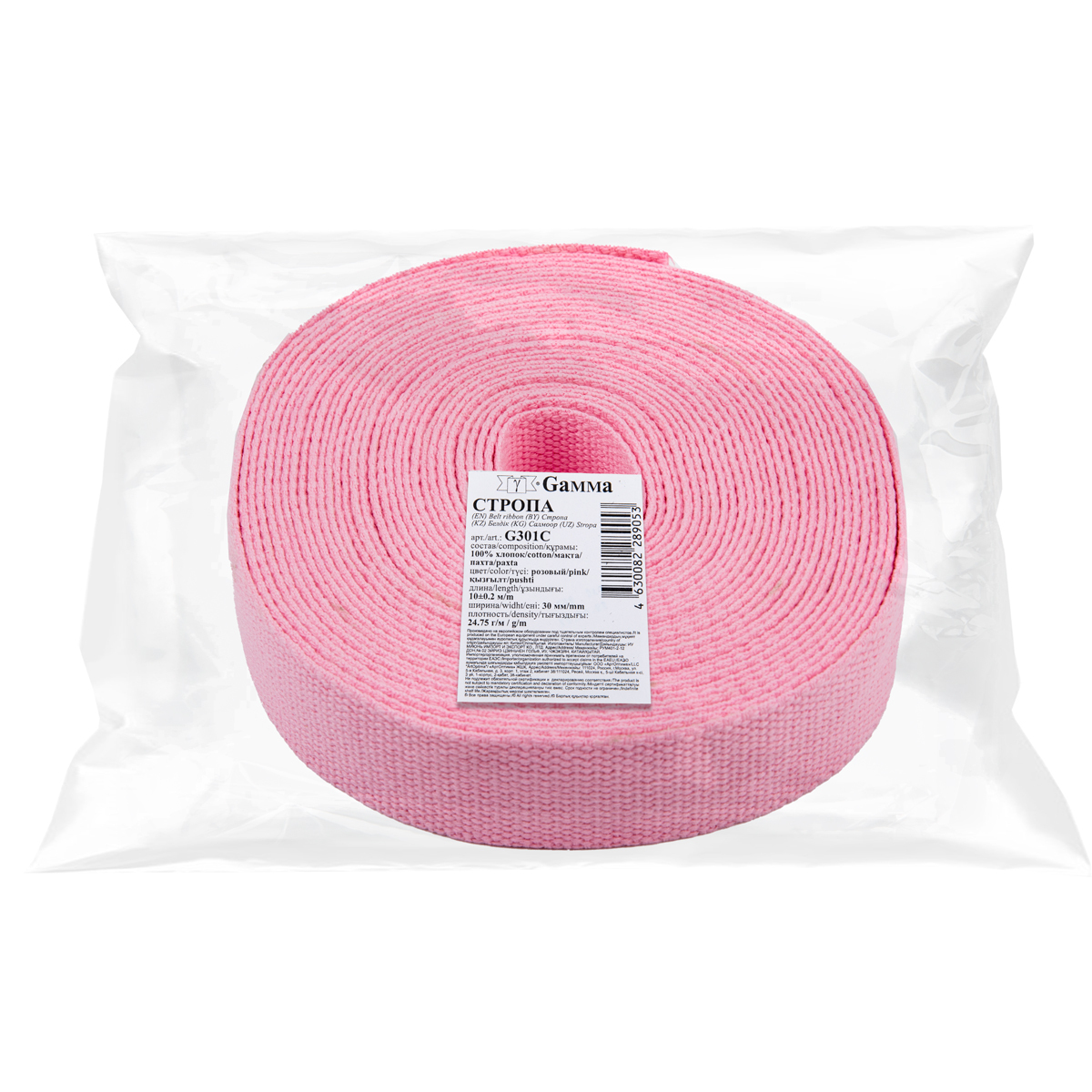 Стропа (ременная лента) 30 мм / 10 метров, толщ. 1.92 мм, [24.75 г/пог.м], 100% х/б, розовый, Gamma G301C