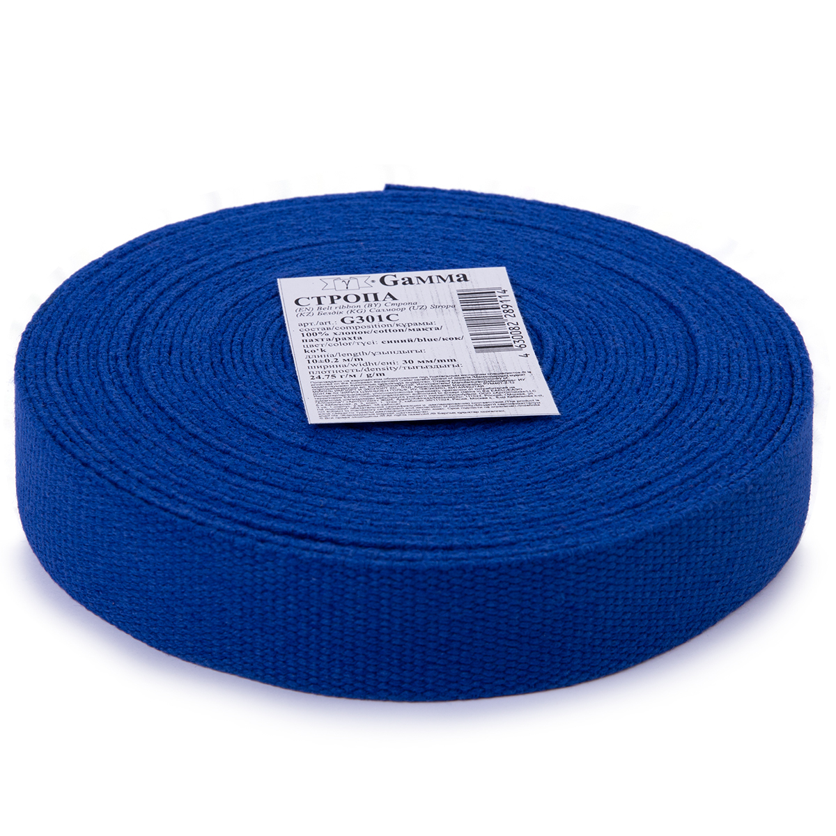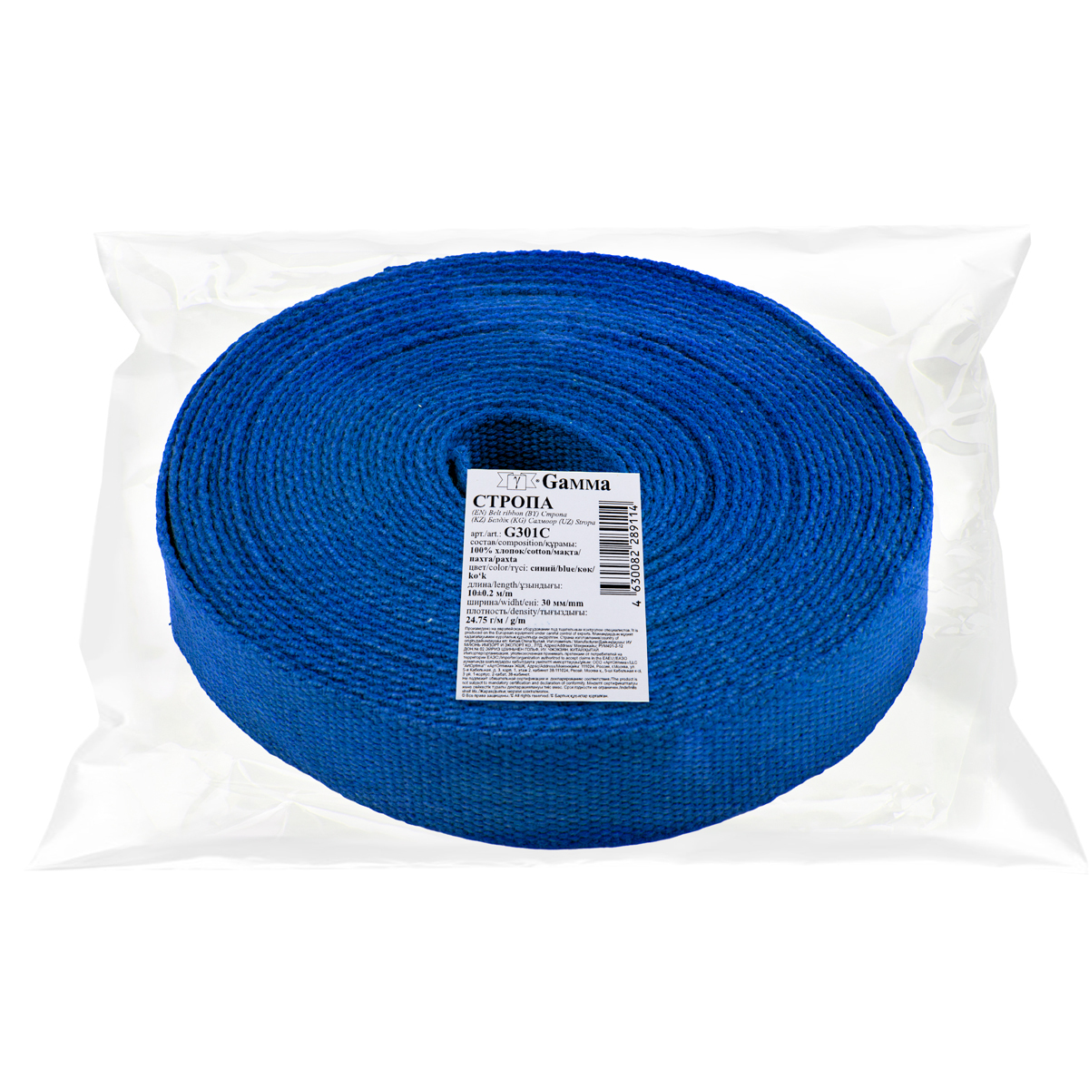Стропа (ременная лента) 30 мм / 10 метров, толщ. 1.92 мм, [24.75 г/пог.м], 100% х/б, синий, Gamma G301C