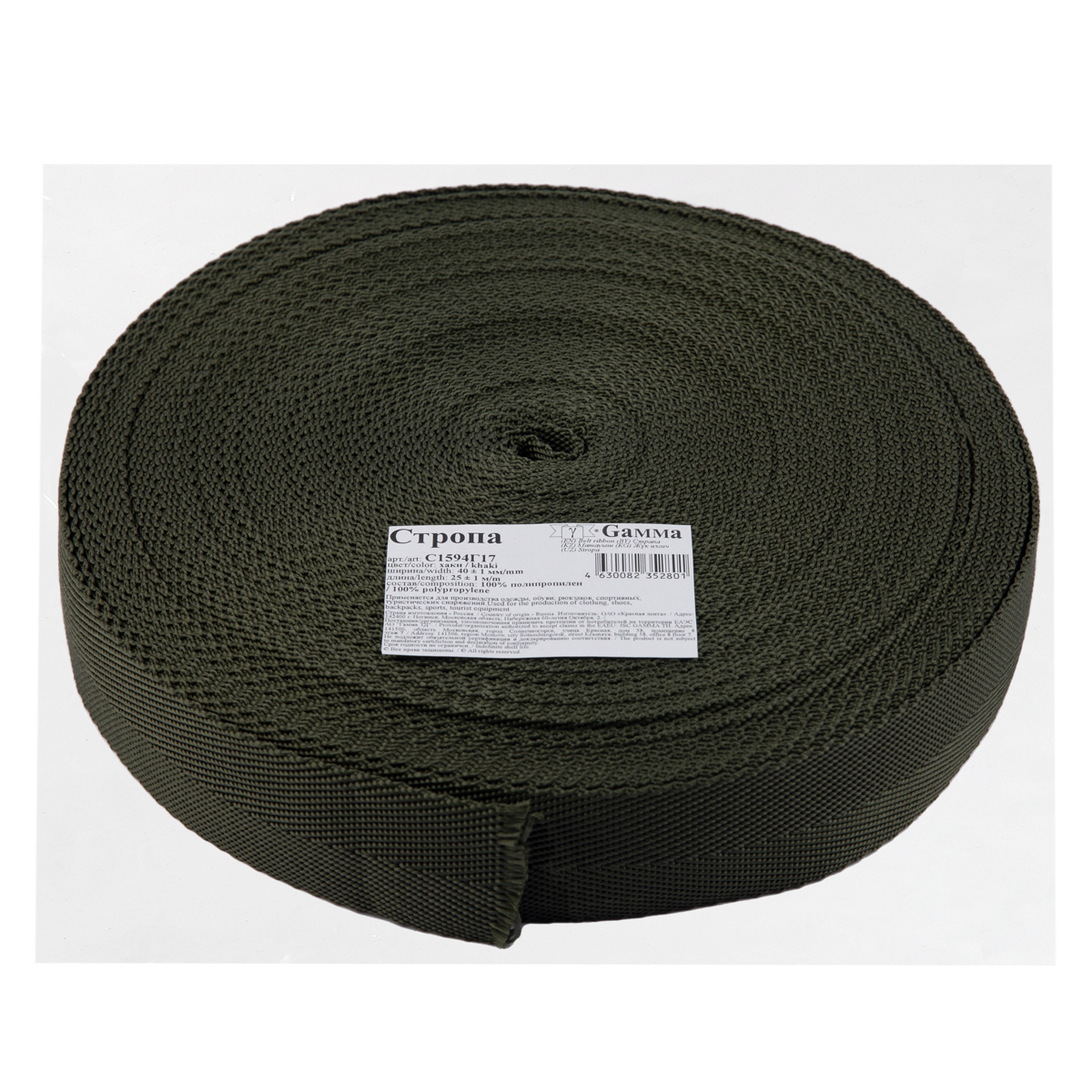 Стропа (ременная лента) 40 мм / 25 метров, толщ. 1.44 мм, [14.4 г/пог.м], 100% п/п, хаки, рис. 3114, Gamma С1594Г17
