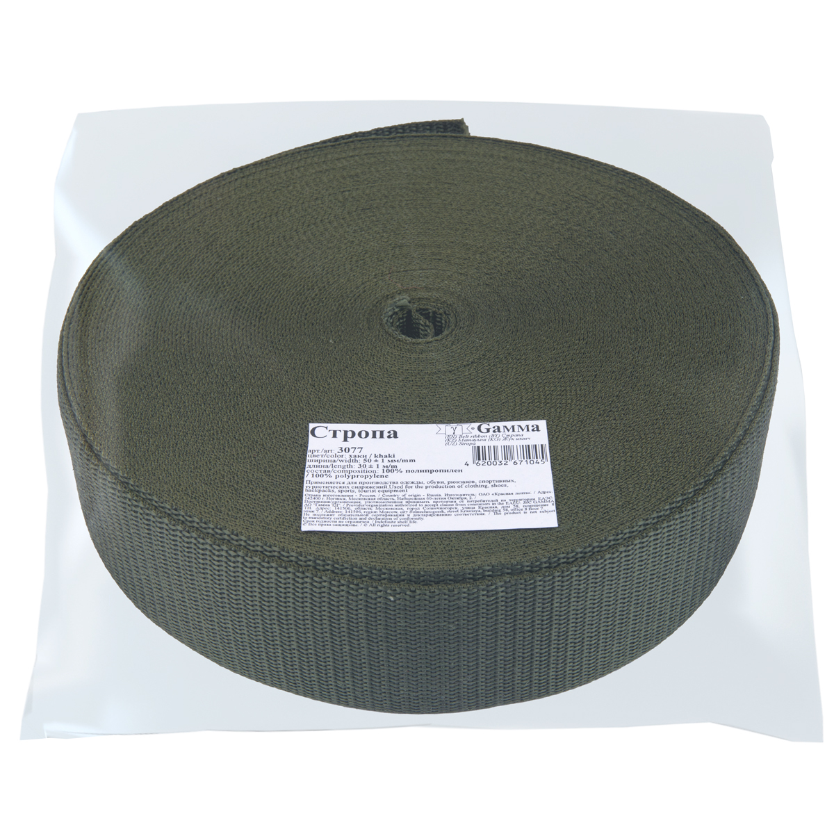 Стропа (ременная лента) 50 мм / 30 метров, толщ. 1.1 мм, [28 г/пог.м], 100% п/п, хаки, Gamma 3077