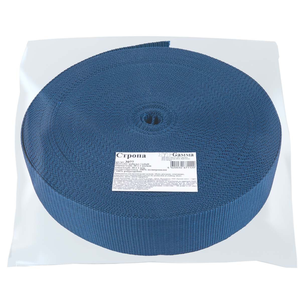 Стропа (ременная лента) 50 мм / 30 метров, толщ. 1.1 мм, [28 г/пог.м], 100% п/п, кобальт, Gamma 3077