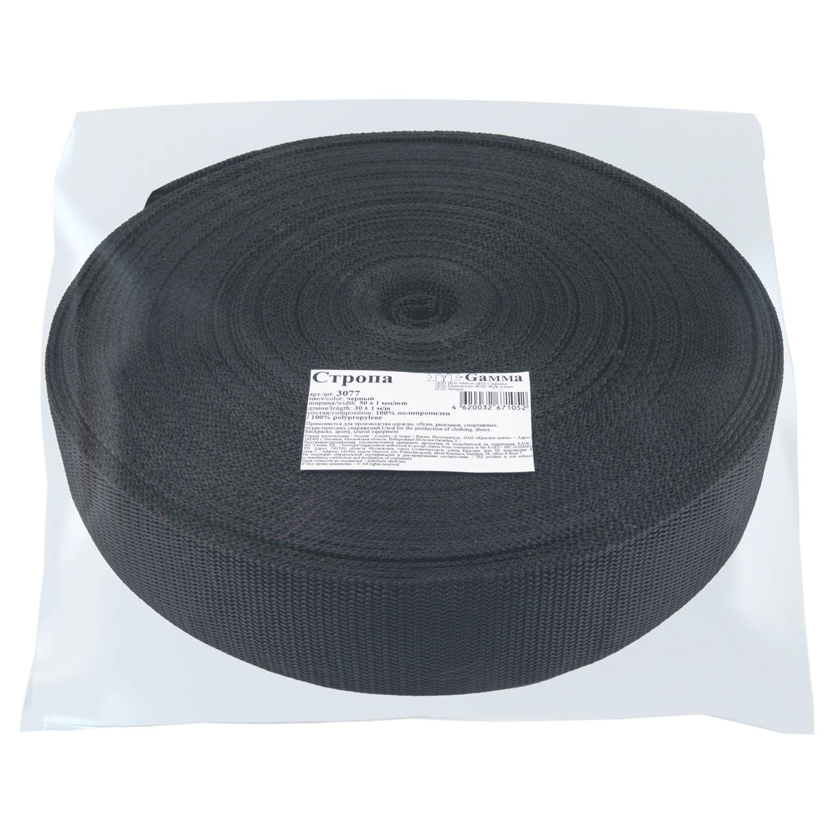 Стропа (ременная лента) 50 мм / 30 метров, толщ. 1.1 мм, [28 г/пог.м], 100% п/п, 0 черный, Gamma 3077