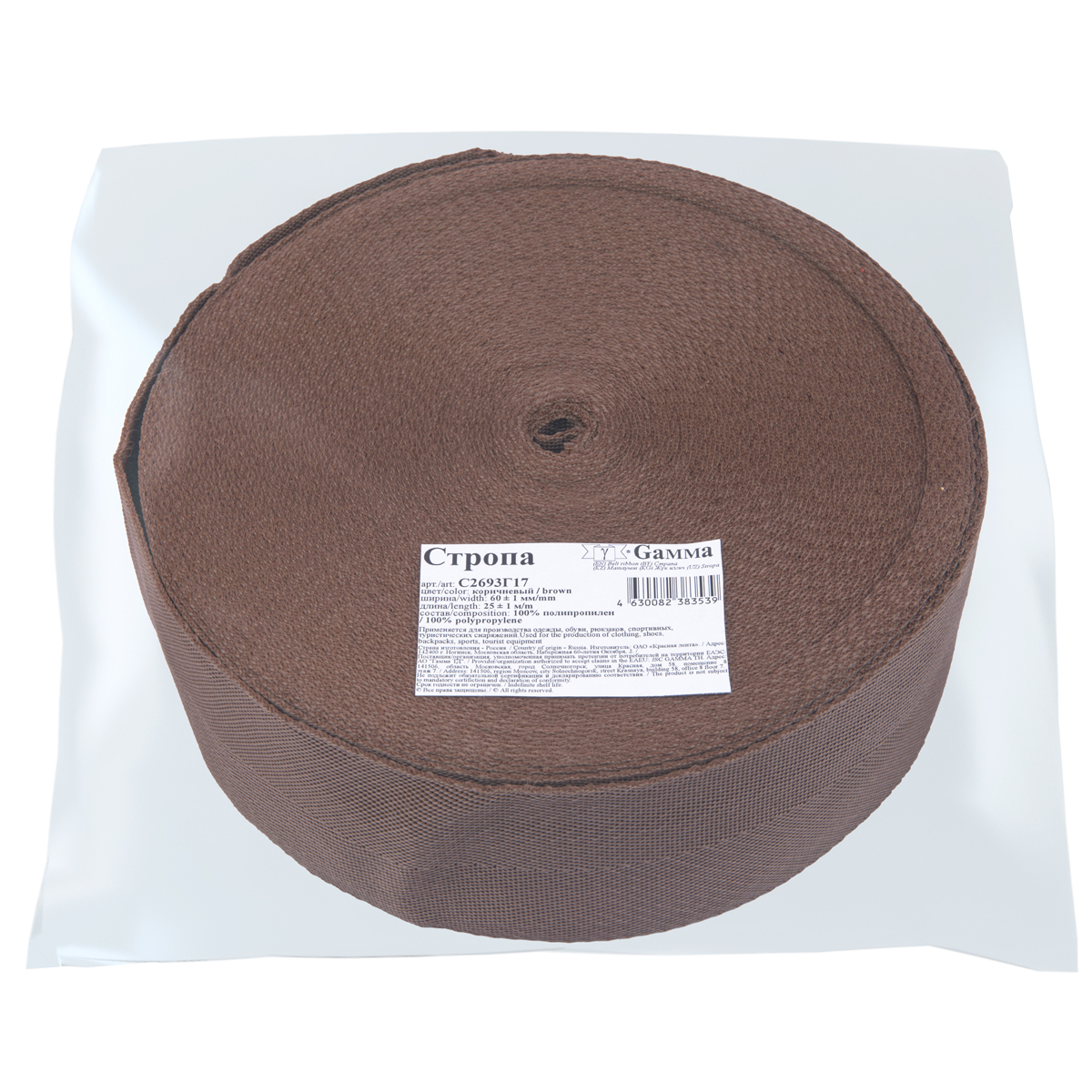 Стропа (ременная лента) 60 мм / 25 метров, толщ. 1.19 мм, [28 г/пог.м], 100% п/п, коричневый, Gamma С2693Г17