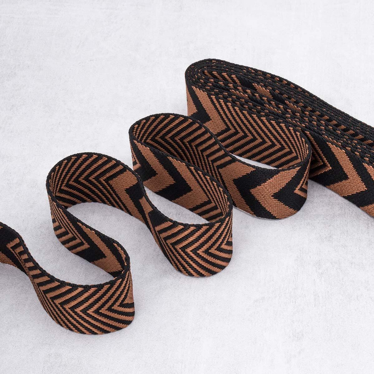Стропа (ременная лента) 38 мм / 3 метра, [40 г/пог.м], с принтом 2-сторонняя, D169 коричневый/черный, 3Al354