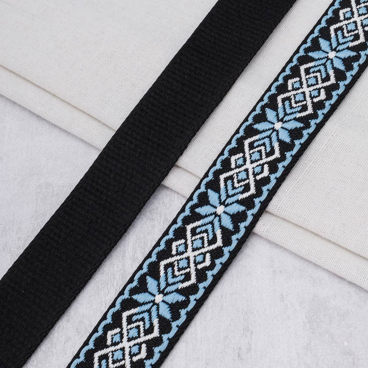 Стропа (ременная лента) 38 мм / 45.72 метра, [34.05 г/пог.м], с принтом 1-сторонняя, T0736 голубой/черный, 3Al359
