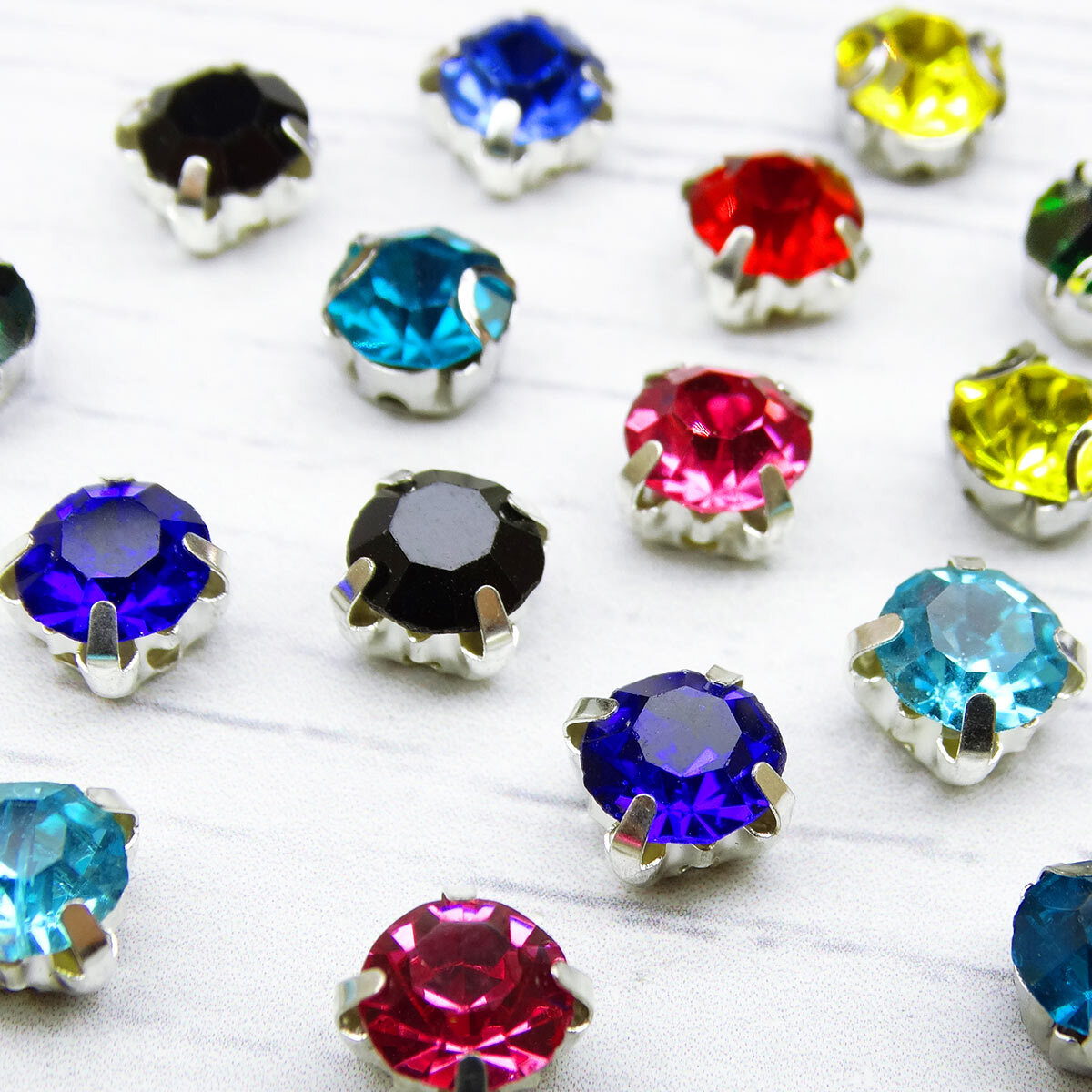 Стразы в цапах круглые (шатоны) 6 мм МИКС цвета, оправа: серебро, 20 шт, СЦ000НН66