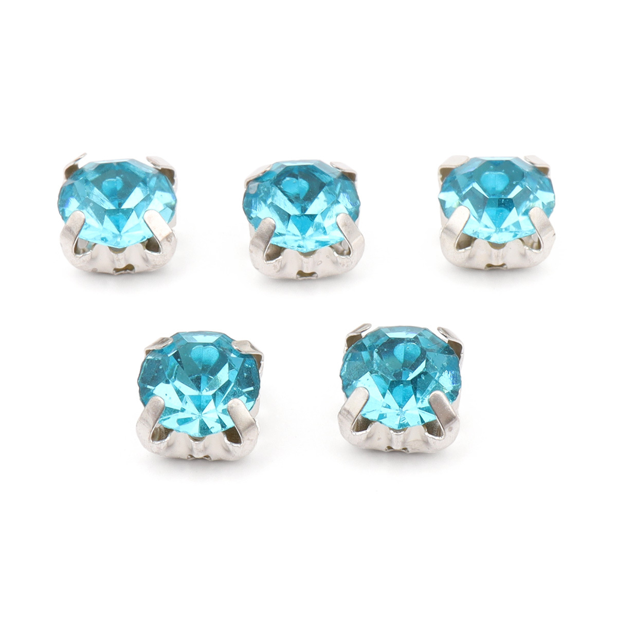 Стразы хрусталь в металлических цапах 6х6 мм, серебро / ярко-голубой, 20 шт, СЦ004НН66