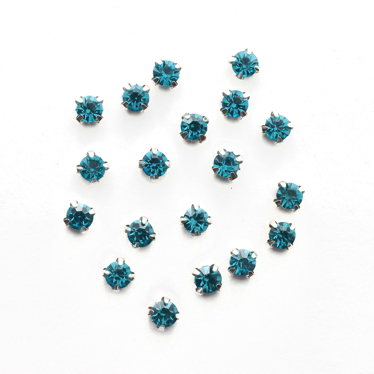 Хрустальные стразы в цапах круглые (серебро) ярко-голубой 6х6мм, 20 шт/упак Astra&Craft, СЦ004НН66