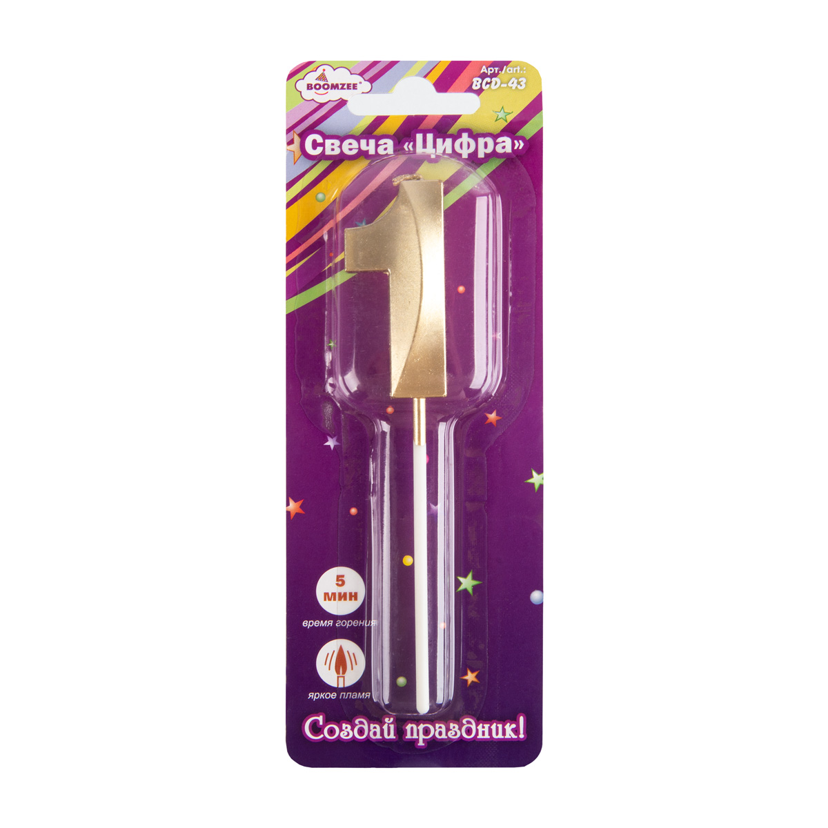 Свеча для торта "Цифра" ТМ "BOOMZEE" арт. BCD-43. Декоративная свеча для торта "Цифра" отлично подойдёт для украшения праздничного торта или другого десерта для Дня Рождения, юбилея или Нового Года. Такие свечи озарят любой Ваш праздник мягким свечением, а желания, загаданные под их волшебный свет, обязательно исполнятся!