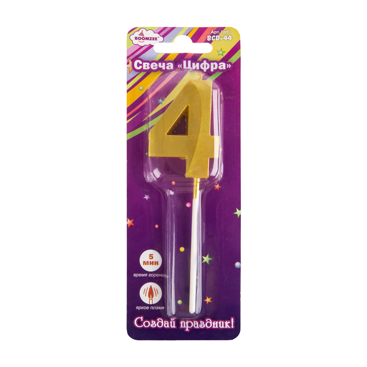 Свеча для торта "Цифра" ТМ "BOOMZEE" арт. BCD-44. Декоративная свеча для торта "Цифра" отлично подойдёт для 4украшения праздничного торта или другого десерта для Дня Рождения, юбилея или Нового Года. Такие свечи озарят любой Ваш праздник мягким свечением, а желания, загаданные под их волшебный свет, обязательно исполнятся!