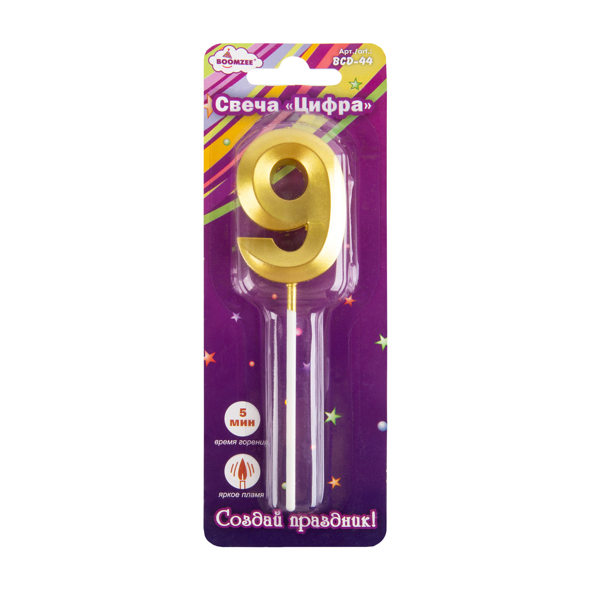 Свеча для торта "Цифра" ТМ "BOOMZEE" арт. BCD-44. Декоративная свеча для торта "Цифра" отлично подойдёт для 4украшения праздничного торта или другого десерта для Дня Рождения, юбилея или Нового Года. Такие свечи озарят любой Ваш праздник мягким свечением, а желания, загаданные под их волшебный свет, обязательно исполнятся!