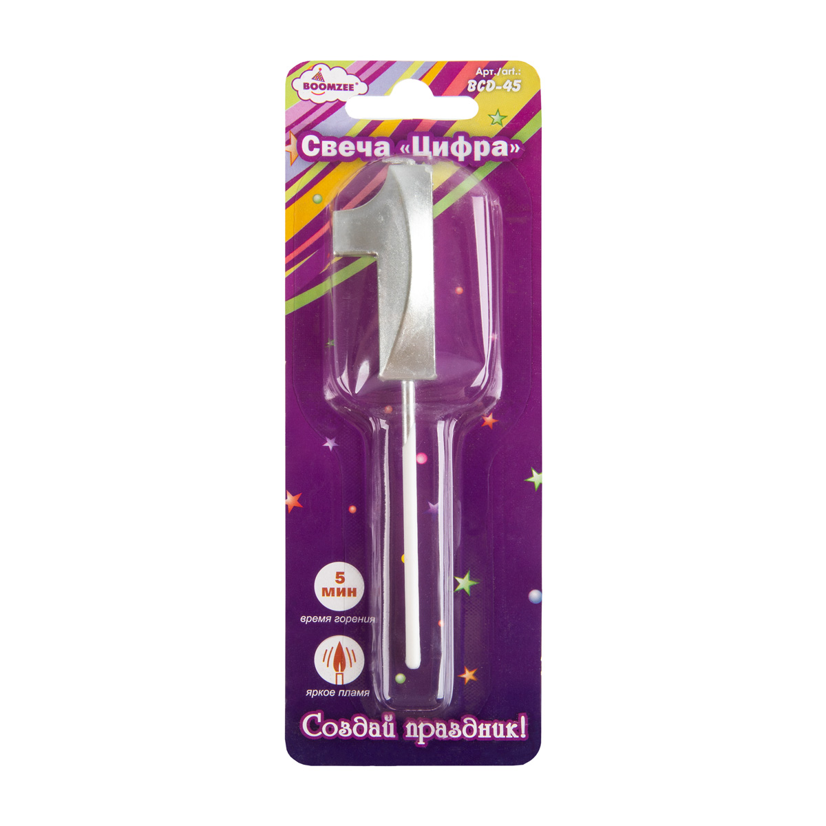 Свеча для торта "Цифра" ТМ "BOOMZEE" арт. BCD-45. Декоративная свеча для торта "Цифра" отлично подойдёт для украшения праздничного торта или другого десерта для Дня Рождения, юбилея или Нового Года. Такие свечи озарят любой Ваш праздник мягким свечением, а желания, загаданные под их волшебный свет, обязательно исполнятся!