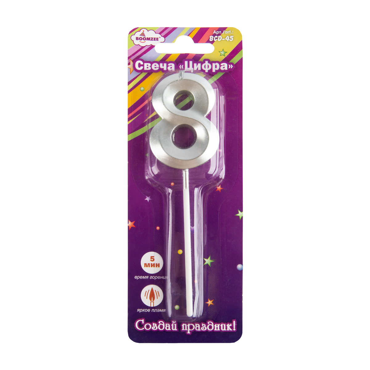 Свеча для торта "Цифра" ТМ "BOOMZEE" арт. BCD-45. Декоративная свеча для торта "Цифра" отлично подойдёт для украшения праздничного торта или другого десерта для Дня Рождения, юбилея или Нового Года. Такие свечи озарят любой Ваш праздник мягким свечением, а желания, загаданные под их волшебный свет, обязательно исполнятся!
