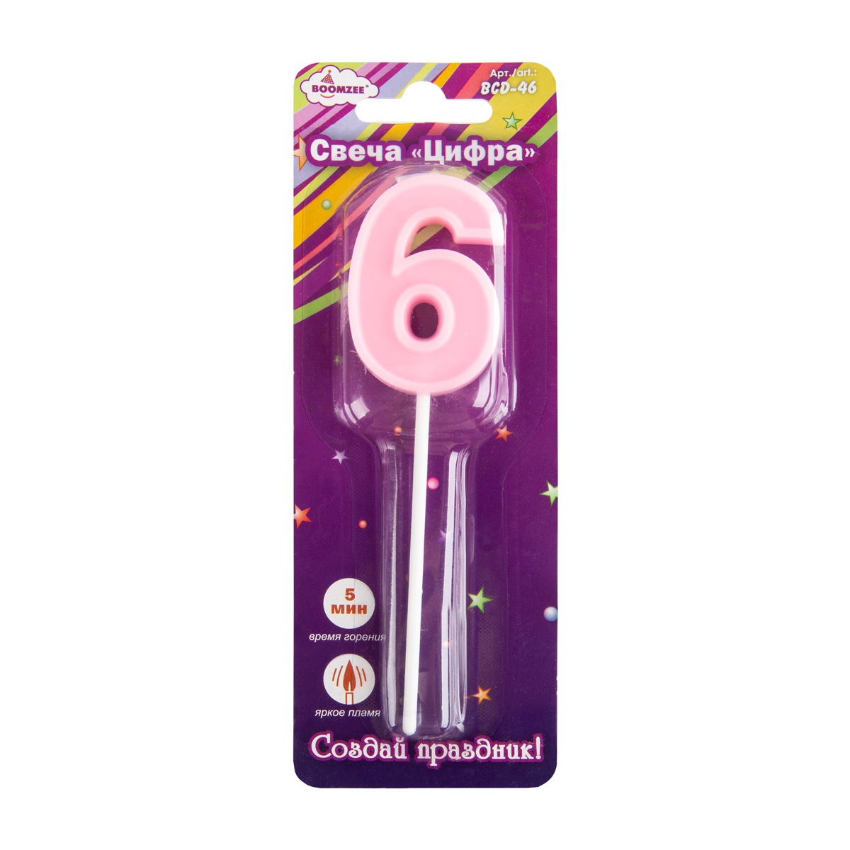 Свеча для торта Цифра 12 шт, 7.5 г, 6_розовый, Boomzee BCD-46