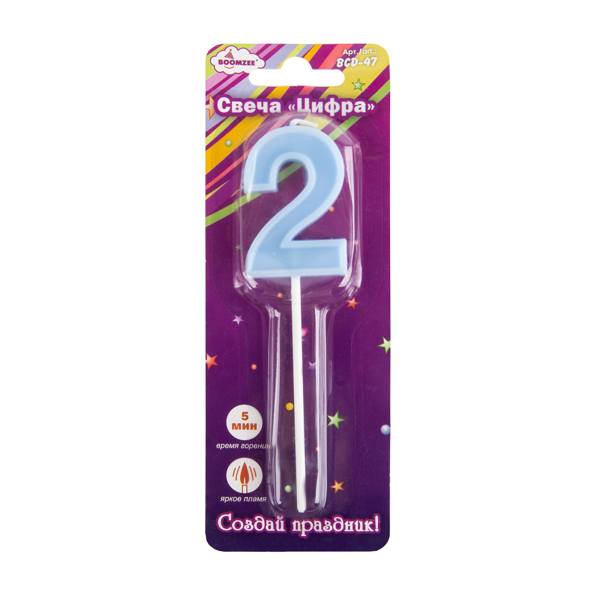 Свеча для торта Цифра 12 шт, 7.5 г, 2_голубой, Boomzee BCD-47