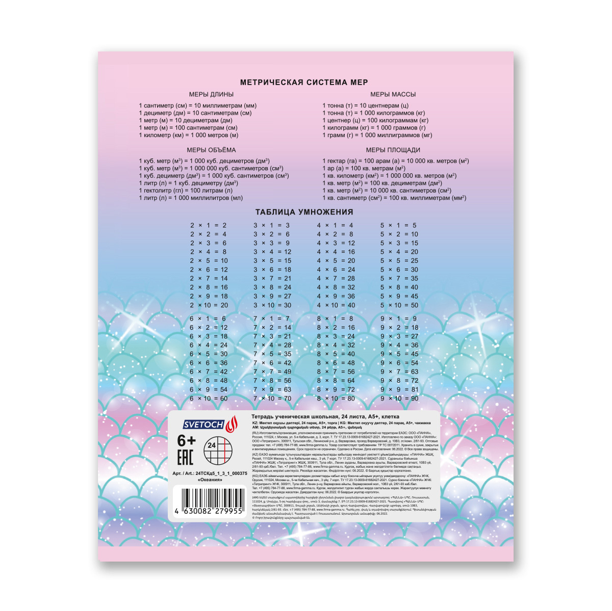 Тетрадь ученическая школьная A5+ 24 л. на скобе 65 г/м², белизна 100% 30 шт, клетка, 000375 Океания, Светоч 24ТСКд5_1_3_1