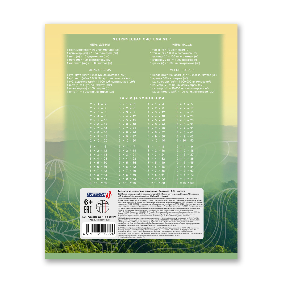 Тетрадь ученическая школьная A5+ 24 л. на скобе 65 г/м², белизна 100% 30 шт, клетка, 000377 Родные просторы, Светоч 24ТСКд5_1_3_1