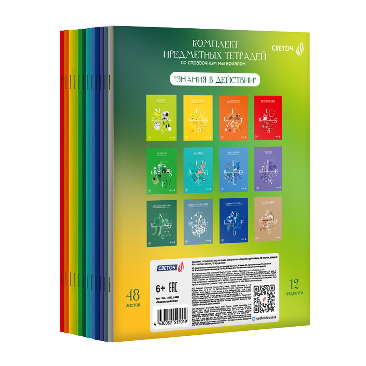 Комплект тетрадей со справочными материалами Знания в действии, A5+ 48 л. 12 шт, на скобе 60 г/м², белизна 90%, клетка/линия, 00889 12 предметов, Светоч 48К2