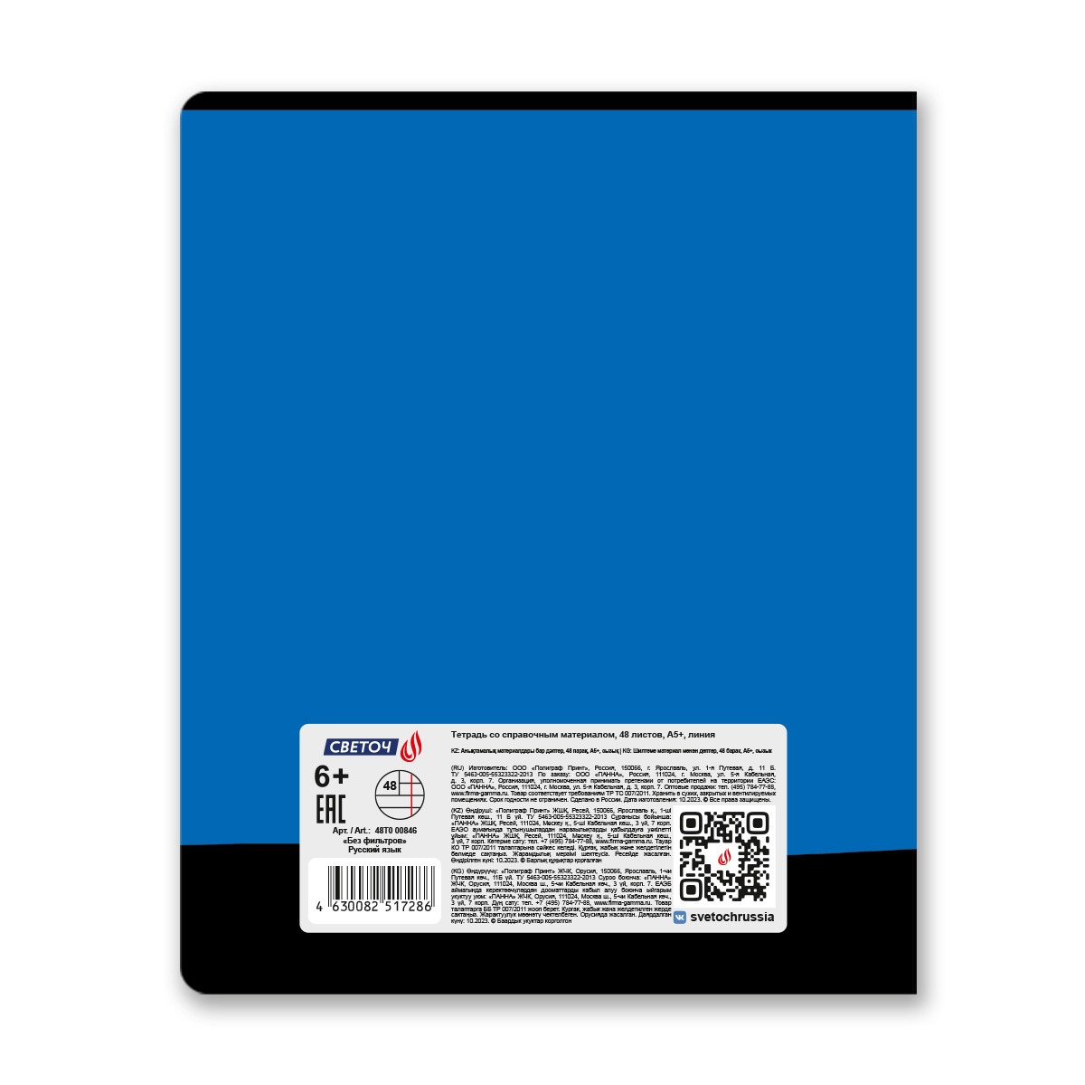 Тетрадь со справочным материалом Без фильтров, A5+ 48 л. на скобе 60 г/м², белизна 90%, 10 шт, линия, 00846 Русский язык, Светоч 48Т0
