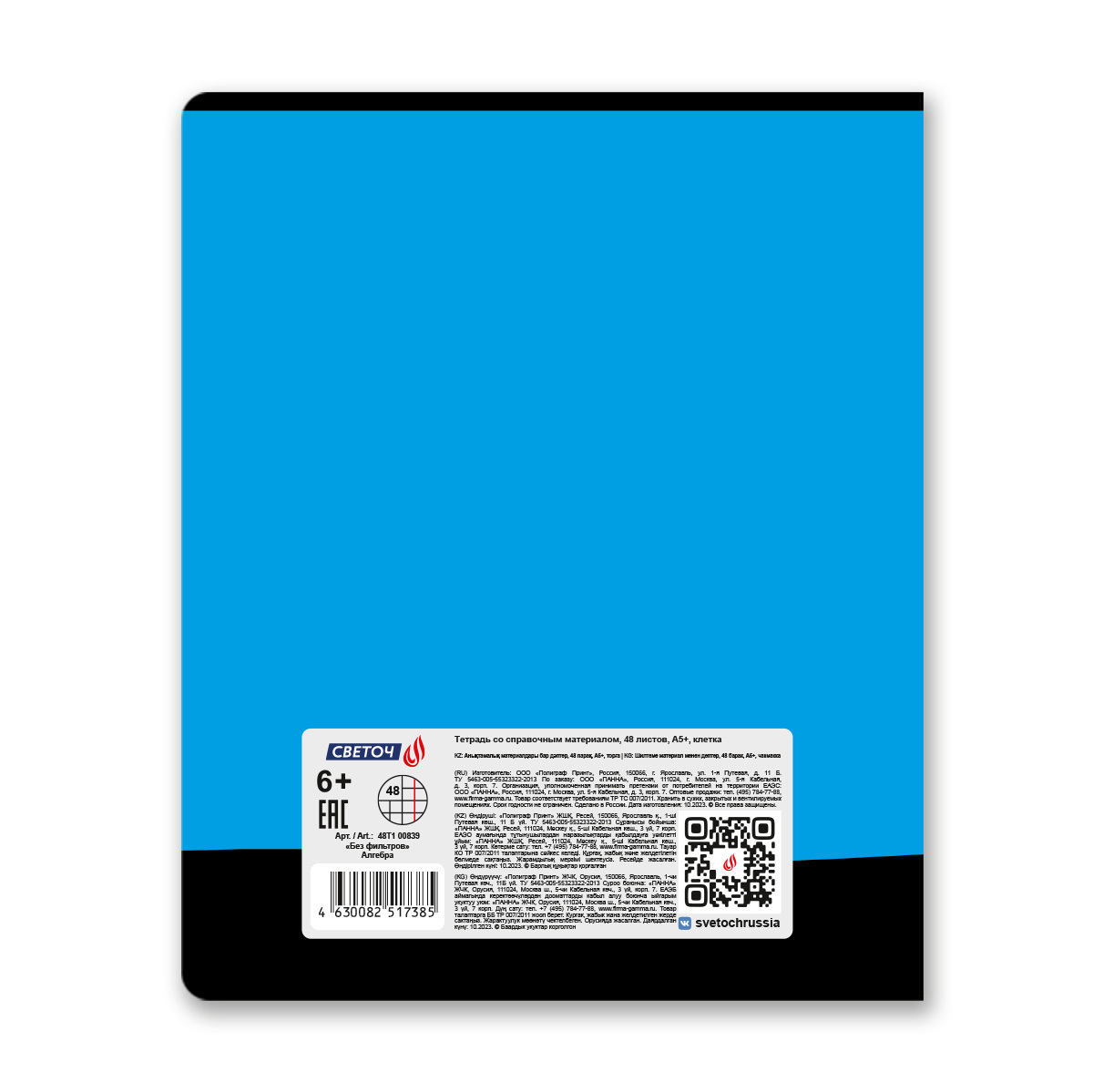 Тетрадь со справочным материалом Без фильтров, A5+ 48 л. на скобе 60 г/м², белизна 90%, 10 шт, клетка, 00839 Алгебра, Светоч 48Т1