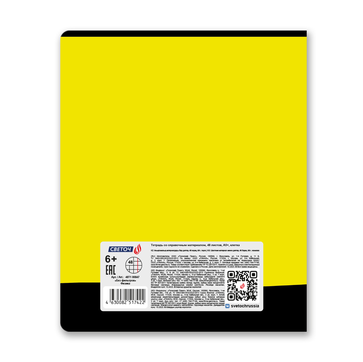 Тетрадь со справочным материалом Без фильтров, A5+ 48 л. на скобе 60 г/м², белизна 90%, 10 шт, клетка, 00847 Физика, Светоч 48Т1