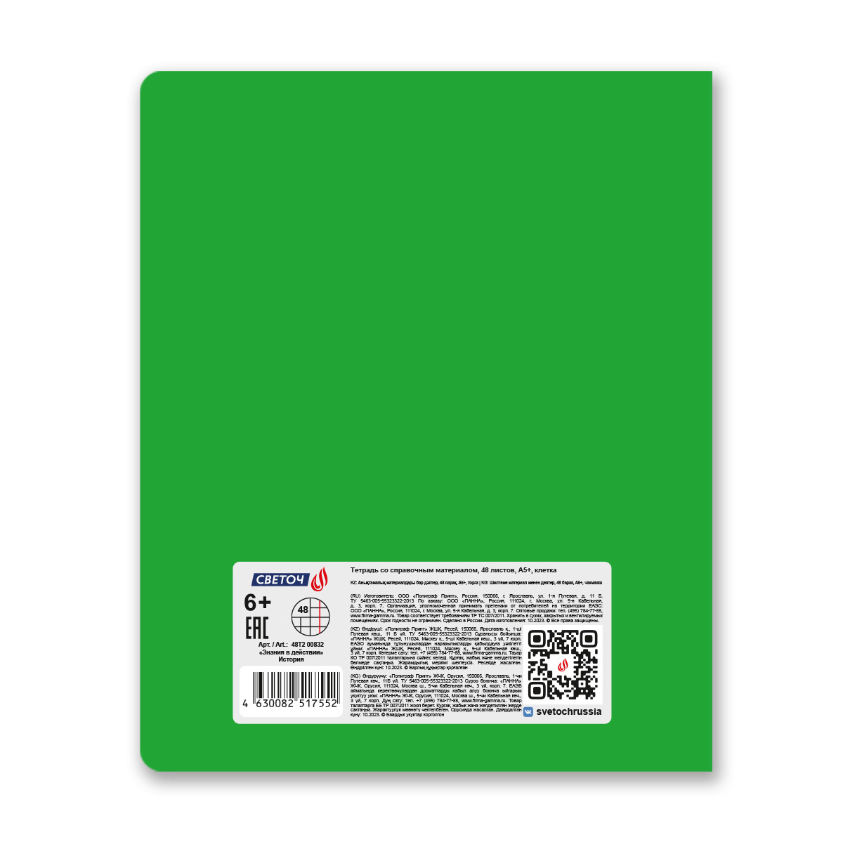 Тетрадь со справочным материалом Знания в действии, A5+ 48 л. на скобе 60 г/м², белизна 90%, 10 шт, клетка, 00832 История, Светоч 48Т2