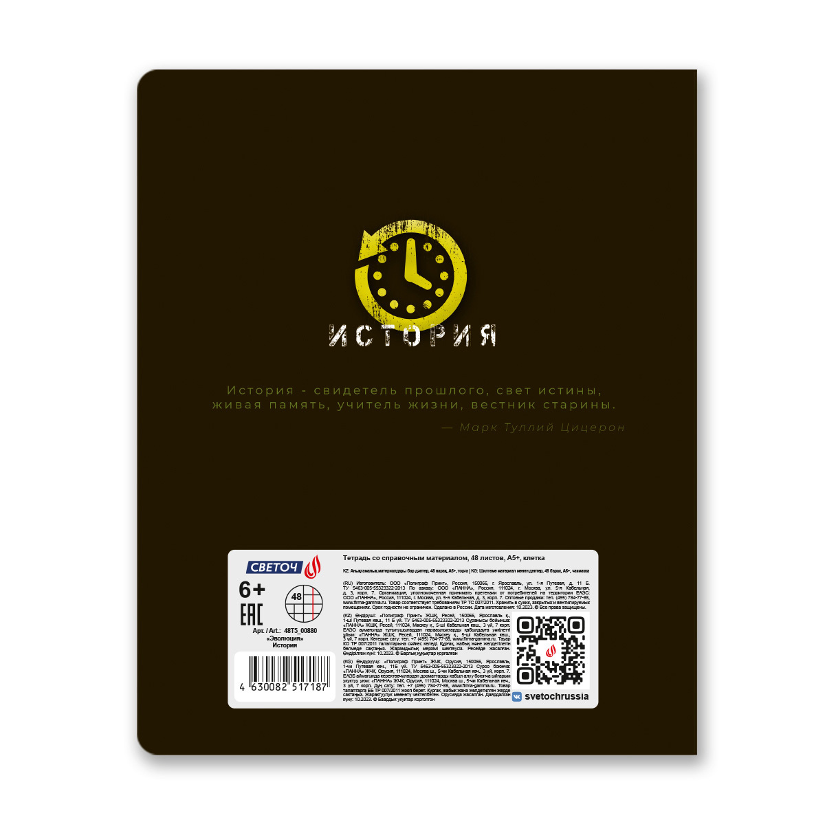 Тетрадь со справочным материалом Эволюция, глянцевая ламинация, A5+ 48 л. на скобе 65 г/м², белизна 100%, 10 шт, клетка, 00880 История, Светоч 48Т5