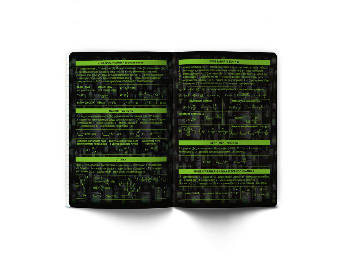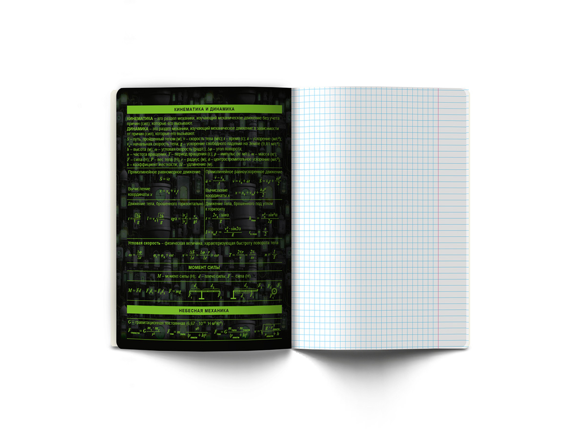 Предметная тетрадь А5+ формата, 48 листов предназначена для учащихся средних и старших классов. Внутренний блок изготовлен из качественной писчей бумаги плотностью 65 г/кв. м, 100% белизны, обложка из мелованного картона плотностью 190 г/кв. м. Дизайн изделия дополнен спецэффектом в виде глянцевой ламинации. Линовка - клетка. Вид скрепления - скоба. Тетради имеют закругленные уголки, красные поля, титульный лист и запечатанный форзац. Справочная информация по предмету на форзацах, обороте титульного листа и последнем листе.