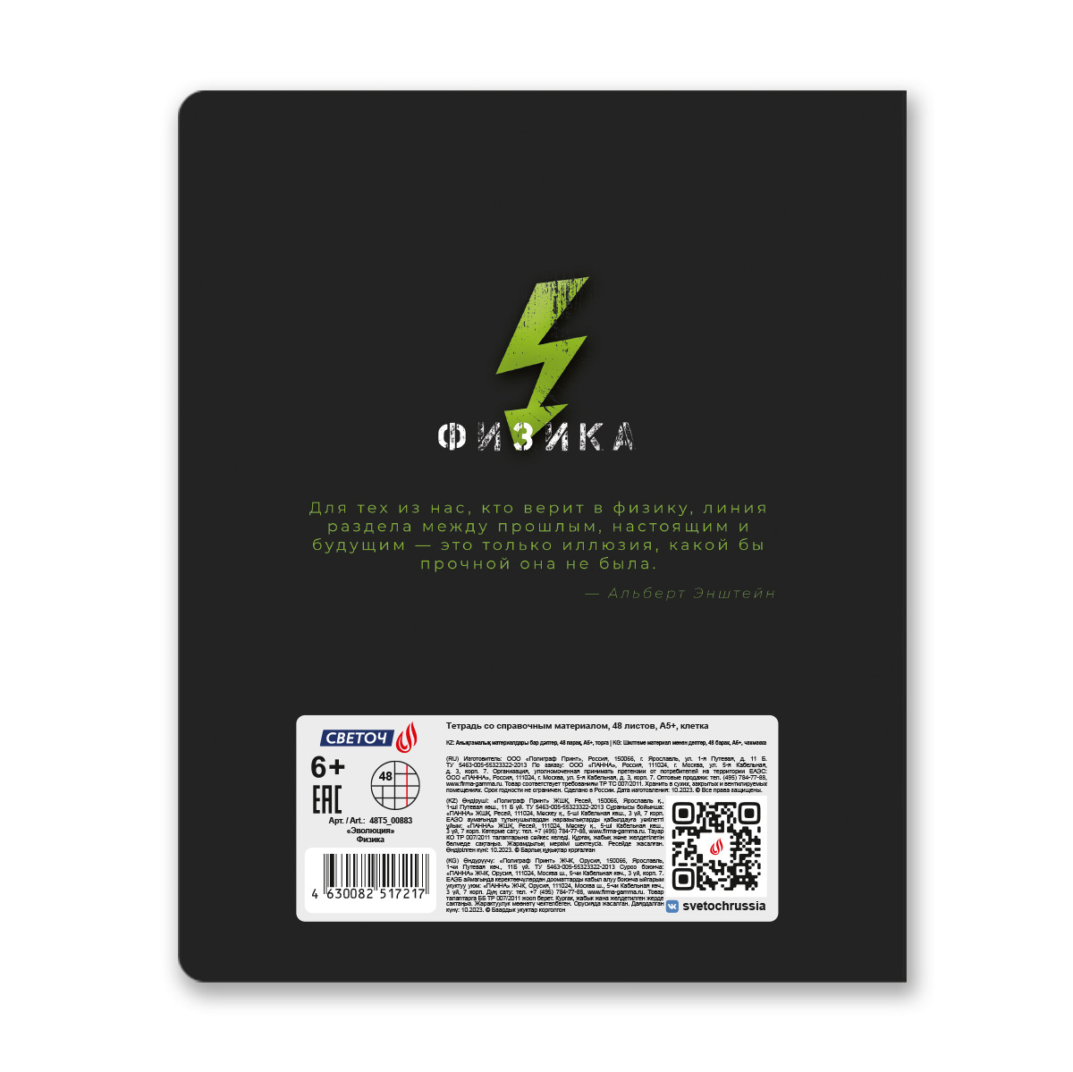 Тетрадь со справочным материалом Эволюция, глянцевая ламинация, A5+ 48 л. на скобе 65 г/м², белизна 100%, 10 шт, клетка, 00883 Физика, Светоч 48Т5
